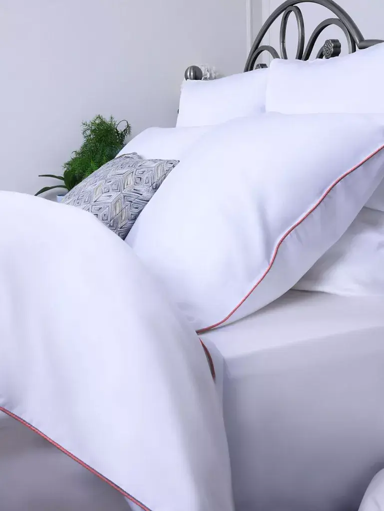 Постельное белье 2 спальное евро Mollen белое с вишнево-ягодным кантом