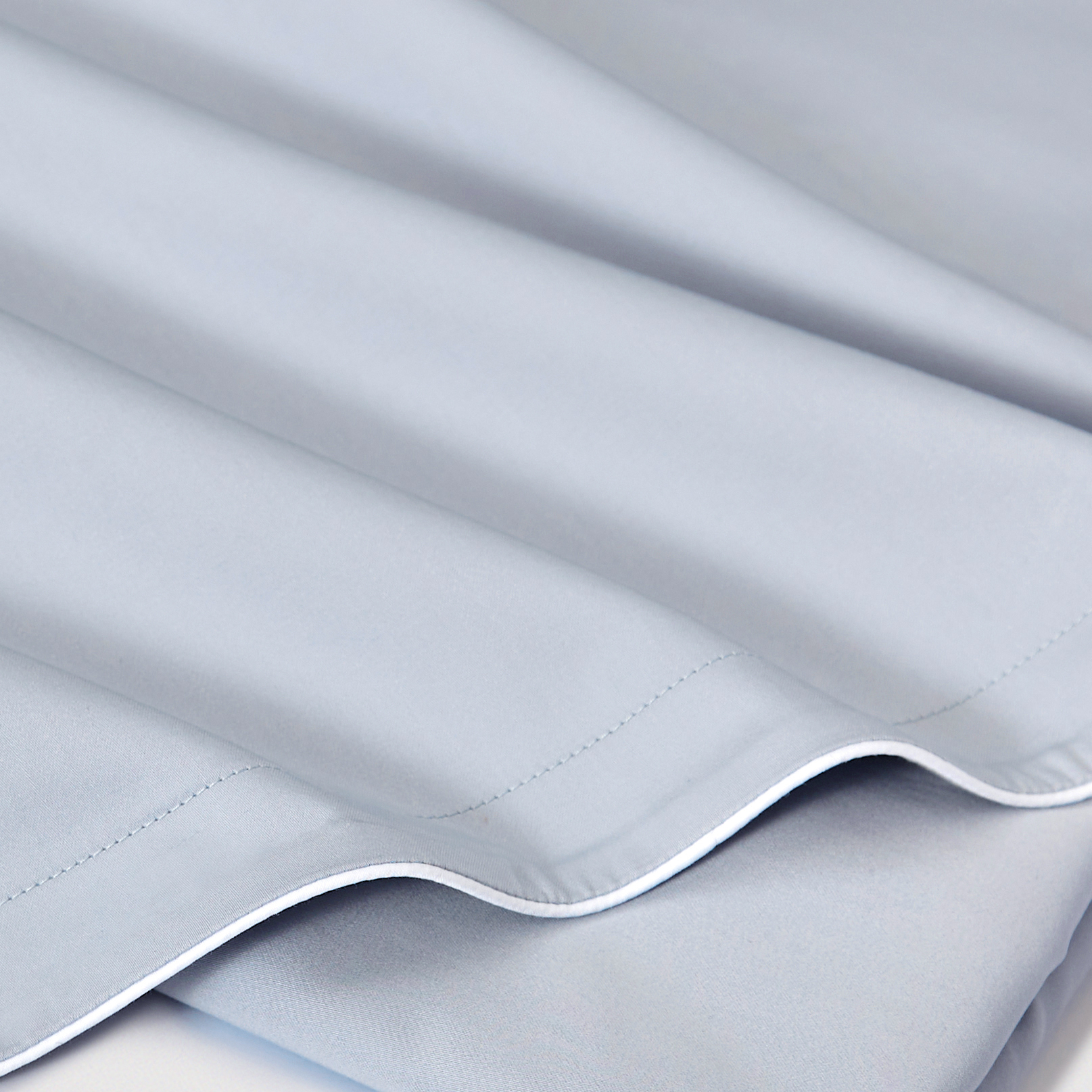 Пододеяльник и наволочки декорированы контрастным кантом, на молнии.
