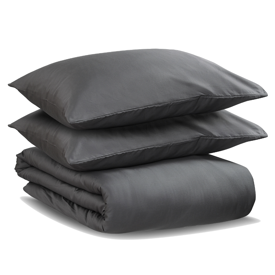 Приглушенный серый оттенок сатинового белья плотностью в 210ТС приятно дополнит любой интерьер. Мягкий жемчужный отблеск и нежность натурального хлопка - отличный выбор для комфортного сна.Размер: пододеяльник – 200х220 см, две наволочки по 50х70 см