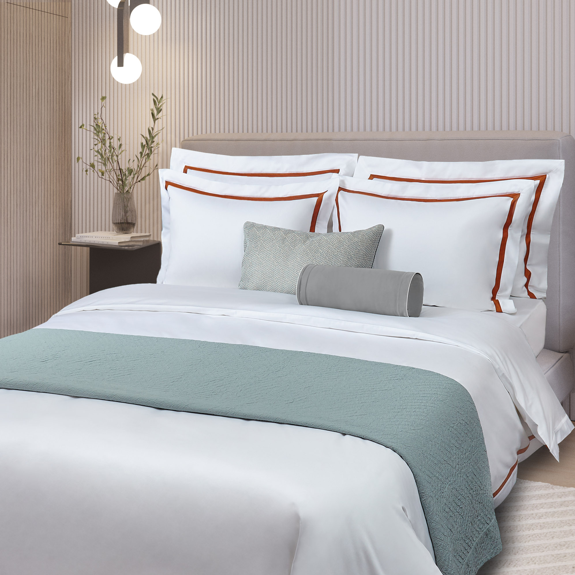 Постельное белье cемейное Сlaire&Caroll Nuage белое с оранжевым кантом