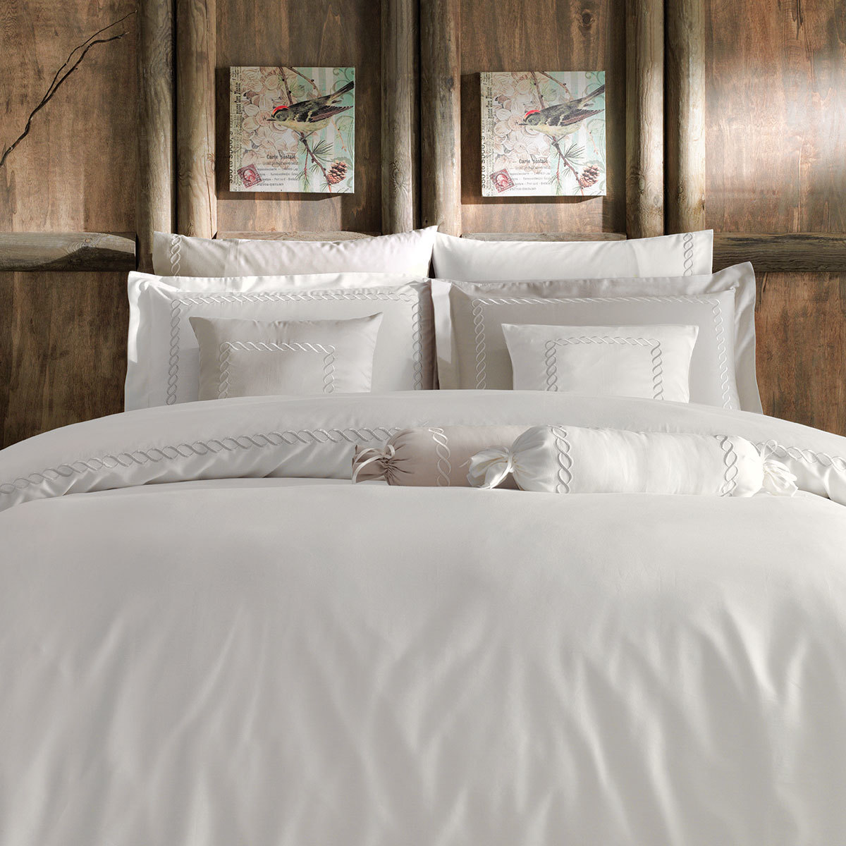 Постельное белье 2 спальное евро Tivolyo home Catena Nakisli крем-бежевое