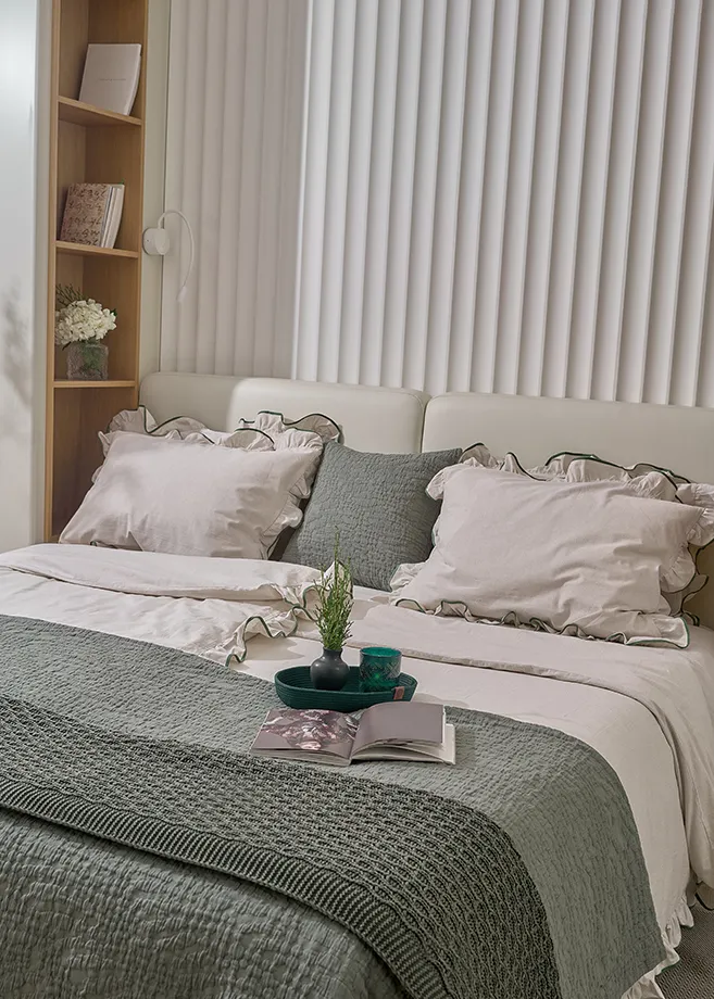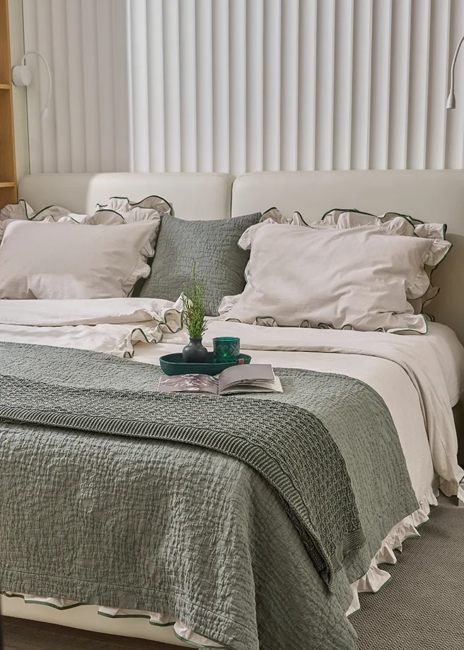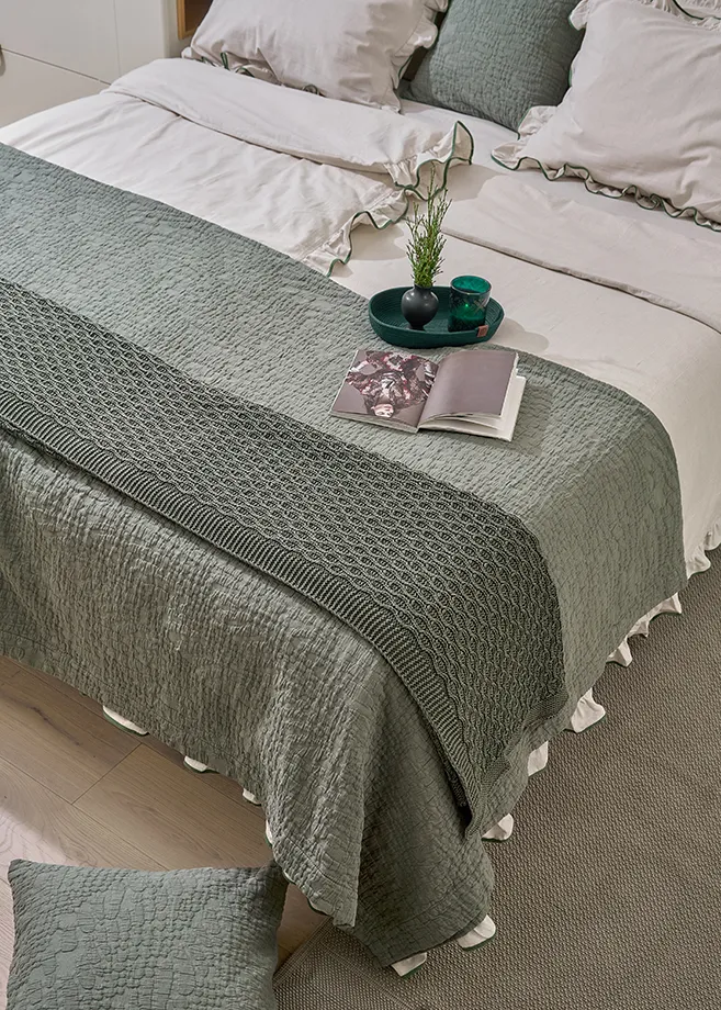 Изделие подойдёт для зоны: спальня. Цвет зеленый легко сочетается с базовыми и природными оттенками интерьера, поэтому текстиль можно использовать как самостоятельный акцент или как часть готового комплекта.
