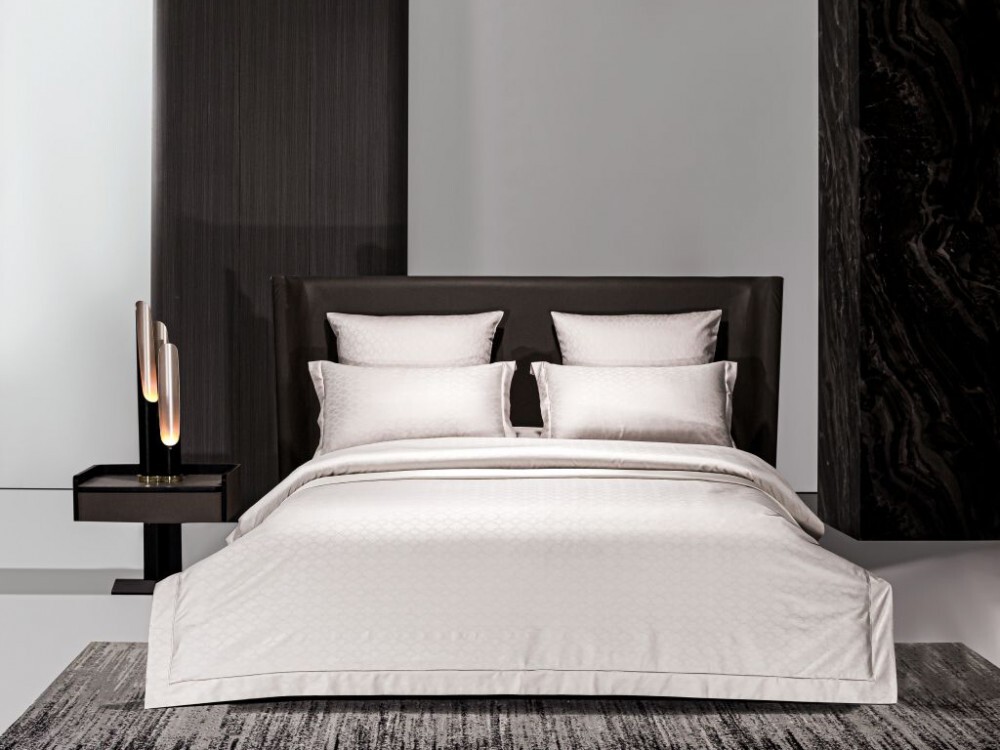 Комплект из одеяла ("одеяло-комфортер" - используется вместо пододеяльника), простыни и наволочек из хлопкового жаккарда.