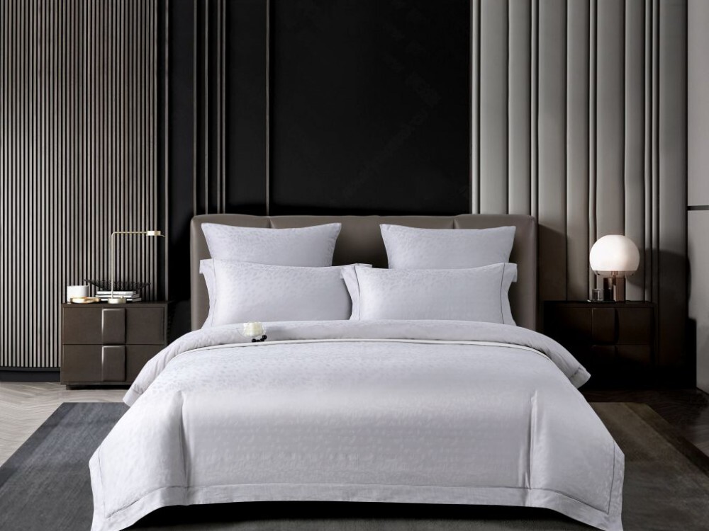 Комплект из одеяла ("одеяло-комфортер" - используется вместо пододеяльника), простыни и наволочек из хлопкового жаккарда.