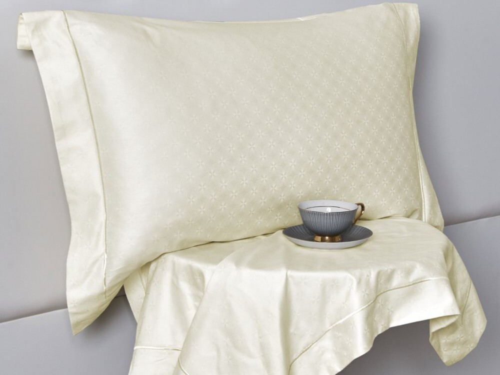 Комплект из одеяла ("одеяло-комфортер" - используется вместо пододеяльника), простыни и наволочек из хлопкового жаккарда.