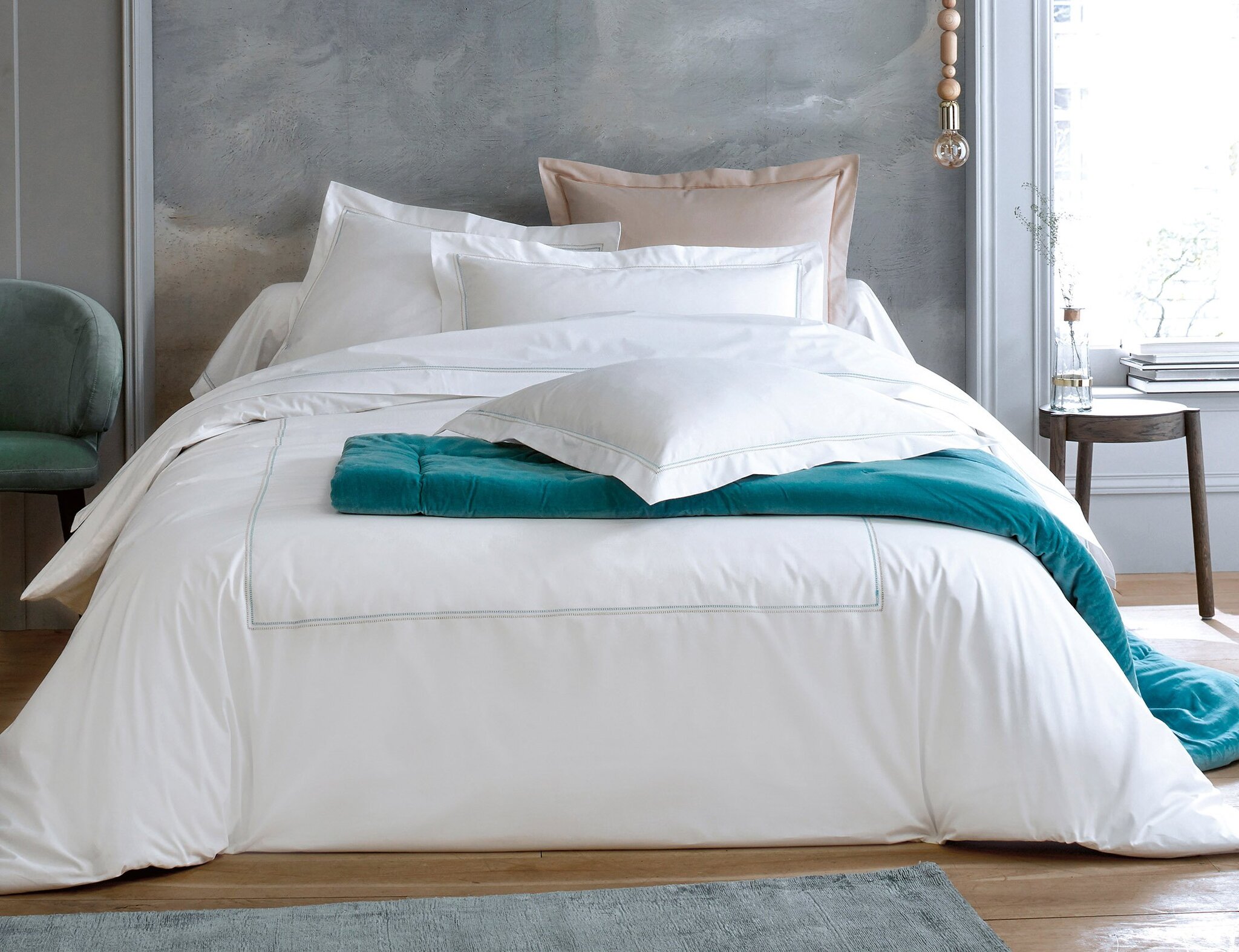 Постельное белье семейное Blanc des Vosges Souvenirs celadon бирюзовое