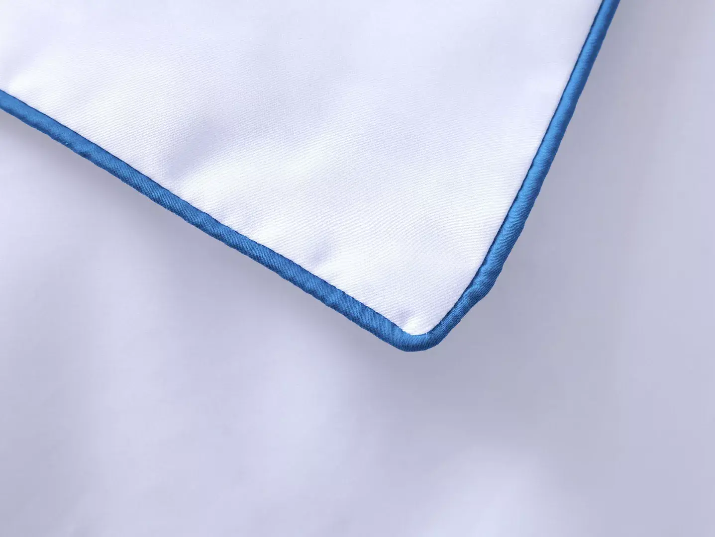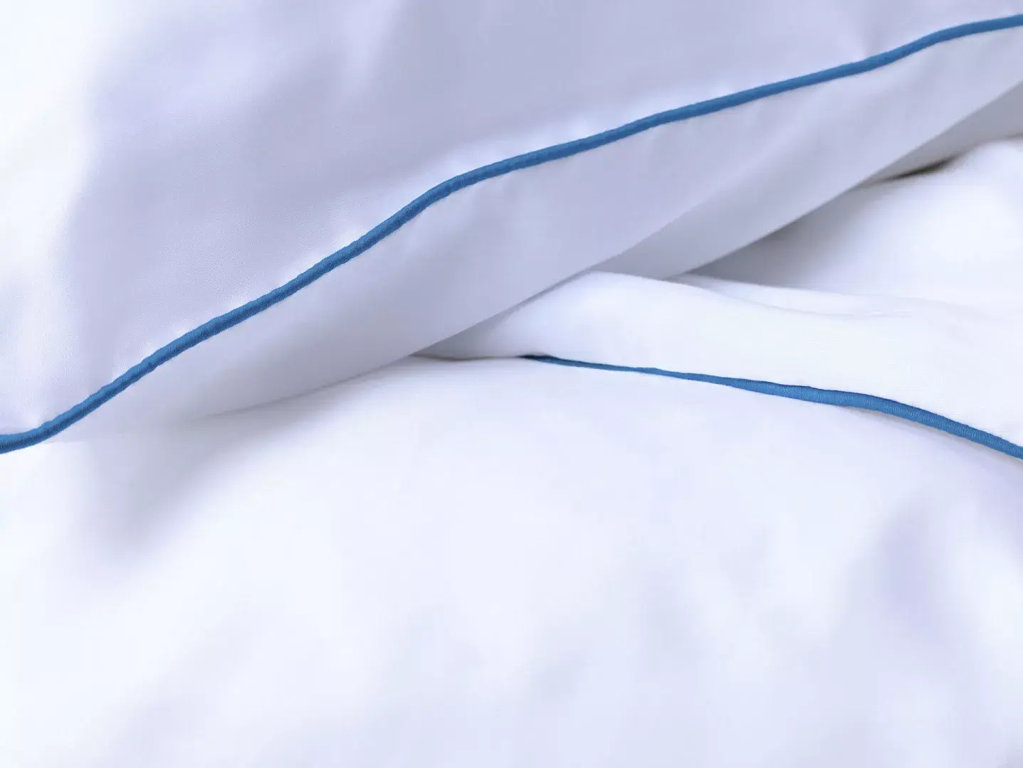 Это объемный кант насыщенного василькового оттенка. Цвет идеально вписывается в стиль Mollen: яркий, но не вызывающий, органично сочетающийся с самыми разными оттенками. Кант задает отчетливый ритм и превращает банальный комплект постельного белья в лаконичный дизайнерский шедевр.
