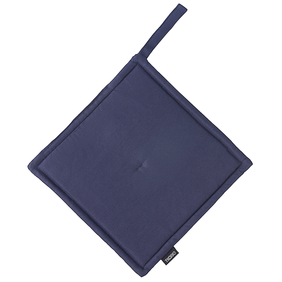 Прихватка из хлопка темно-синего цвета из коллекции Essential – универсальный кухонный аксессуар. Однотонное изделие органично впишется в любой интерьер. Не нагревается при контакте с горячими поверхностями. Внешняя часть из 100% гипоаллергенного хлопка. Наполнитель – полиэстер. Есть удобная петелька для подвешивания.