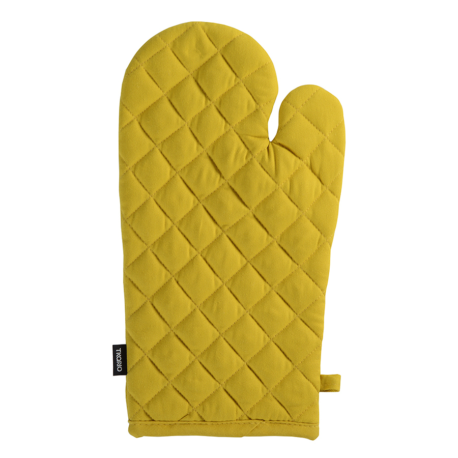 Горчичная прихватка-варежка выполнена из прочного мягкого хлопка, который не вызывает аллергию. Тонкий и мягкий наполнитель обеспечивает комфорт во время готовки, снижая риск обжечься об горячую поверхность.