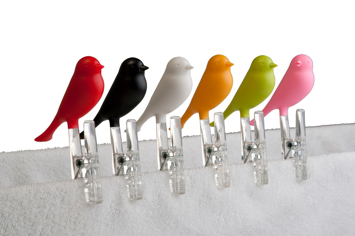 Qualy продолжает радовать нас практичными и милыми вещицами. Эти забавные прищепки превратят большую стирку в забавное времяпрепровождение. Они не только функциональные, но и прикольные, как будто воробушек сел на вашу только что постиранную кофточку или поселился на свежем постельном белье. В наборе 4 штуки, две прищепки с воробьями и две простые.