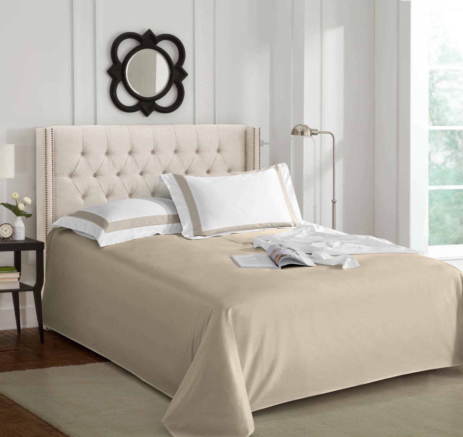 Простыня без резинки на полутороспальную кровать. Это настоящий сатин класса ЛЮКС. Тканями такого уровня, застилают постели с самых лучших отелях . Ткань очень мягкая, шелковистая и долговечная. Изготовлена из 100% хлопка Пима. Сатин плотностью 500 нитей/дюйм с двойной скрученной нитью.