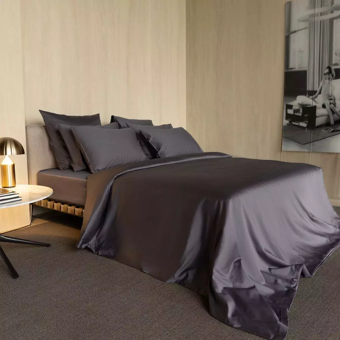 Простыня из элитного сатина, в благородном темно-сером цвете фирменной палитры Mollen. Натуральный графитно-серый цвет сочетается с разными оттенками коллекции Mollen, что создает фантастически гармоничные природные сочетания. Вы можете создавать в спальне собственную яркую реальность сообразно вашему вкусу и настроению, сочетая разные цвета и предметы коллекции. Комбинации могут быть разными, но ощущения от ткани всегда одинаково приятные. Премиальный сатин, сотканный из волокон египетского хлопка и шелковых нитей, необыкновенно комфортны для вашей кожи и дарят приятные ощущения на всю ночь.Ткань отличается замечательной износостойкостью и сохраняет свои качества даже после многократных стирок.