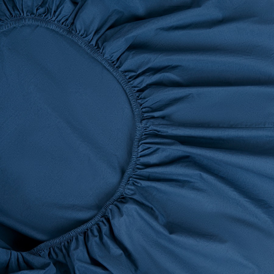 Простыня на резинке темно-синего цвета из органического стираного хлопка из коллекции Essential дополнит подходящий по стилю и цветовой гамме комплект постельного белья и станет практичным и долговечным приобретением. Благодаря фиксации по углам изделие не соскальзывает с матраса во время сна. Стираный перкаль — красивый материал, который отличается мягкостью. Он получается особым способом пряжи – нити переплетаются крест на крест, что придает ткани дополнительную прочность. Перкаль создает ощущение прохлады в летнюю жару и сохраняет тепло зимними ночами. Благодаря плотному переплетению гладких нитей текстиль не деформируется, не линяет, и на нем не образуются катышки. Простыня хорошо пропускает воздух и впитывает влагу, за ней легко ухаживать. Подходит для повседневного использования.
