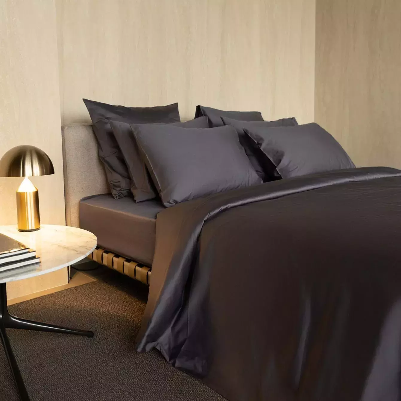 Простыня из элитного сатина, в благородном темно-сером цвете фирменной палитры Mollen. Натуральный графитно-серый цвет сочетается с разными оттенками коллекции Mollen, что создает фантастически гармоничные природные сочетания. Вы можете создавать в спальне собственную яркую реальность сообразно вашему вкусу и настроению, сочетая разные цвета и предметы коллекции. Комбинации могут быть разными, но ощущения от ткани всегда одинаково приятные. Премиальный сатин, сотканный из волокон египетского хлопка и шелковых нитей, необыкновенно комфортны для вашей кожи и дарят приятные ощущения на всю ночь.Ткань отличается замечательной износостойкостью и сохраняет свои качества даже после многократных стирок.