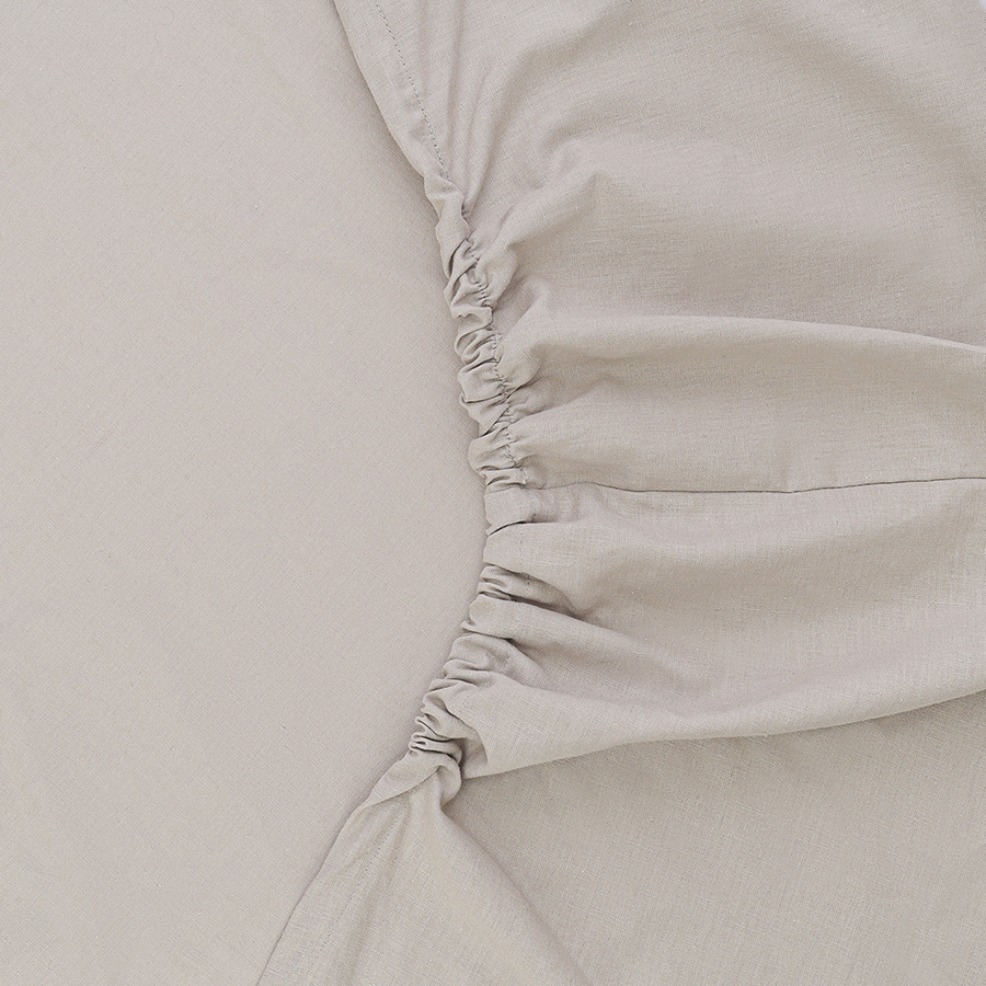 Простыня на резинке изо льна и хлопка серо-бежевого цвета из коллекции Essential – стильное постельное белье высочайшего качества, которое подарит ощущение комфорта во время сна и привнесет в интерьер спальни природную элегантность.