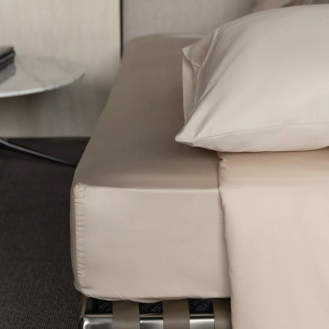 Простыня на резинке в песочно-бежевом Mollen — это простыня для тех, кто ценит комфорт сна, аккуратный внешний вид кровати и качественные материалы на каждый день. Изделие выполнено из материала Сатин, поэтому ее выбирают за приятные тактильные ощущения, удобство в использовании и возможность легко поддерживать целостный стиль спальни.