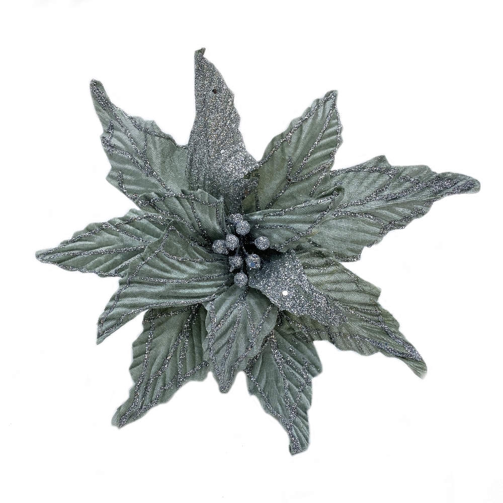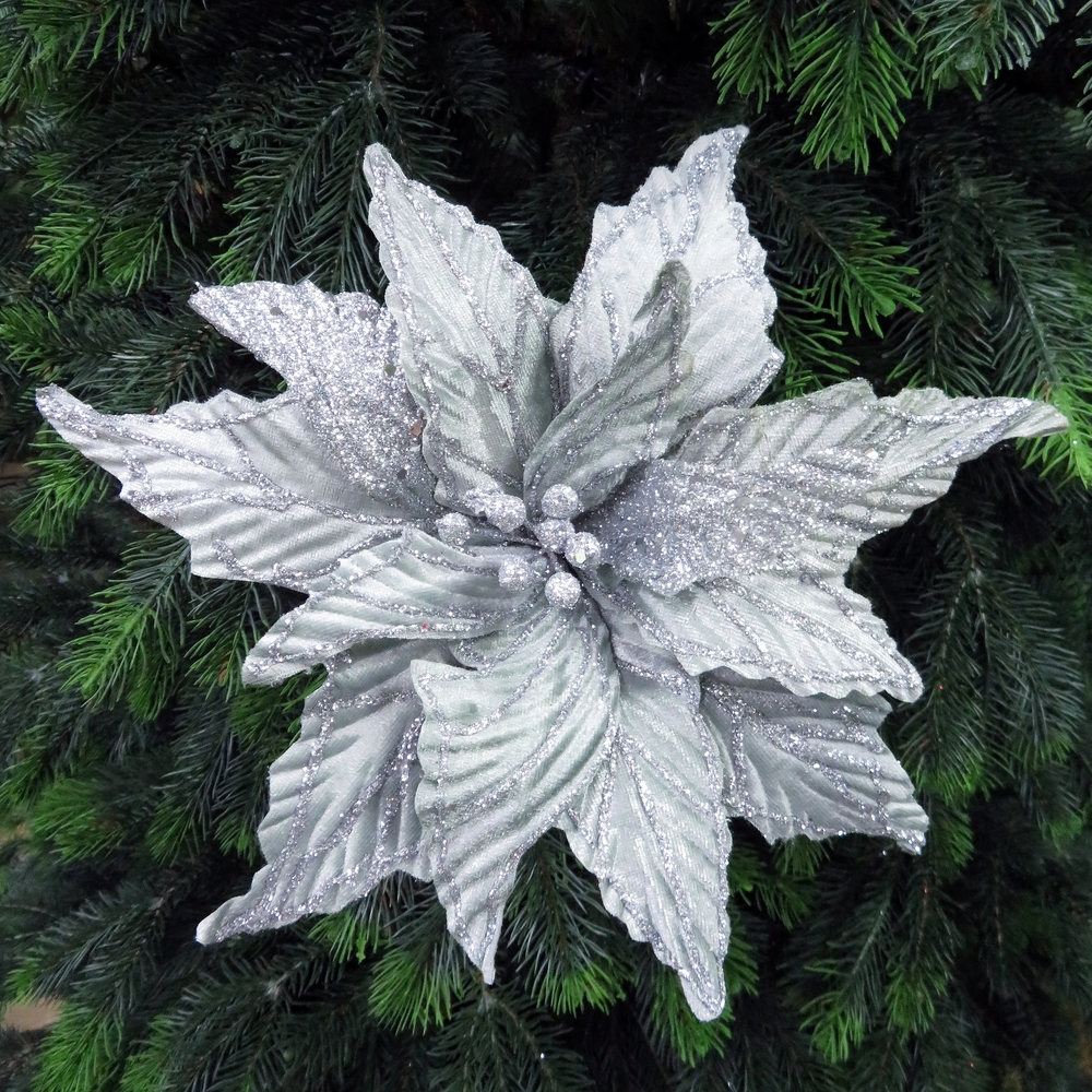 Пуансеттия на клипсе 30см House of seasons серебряная