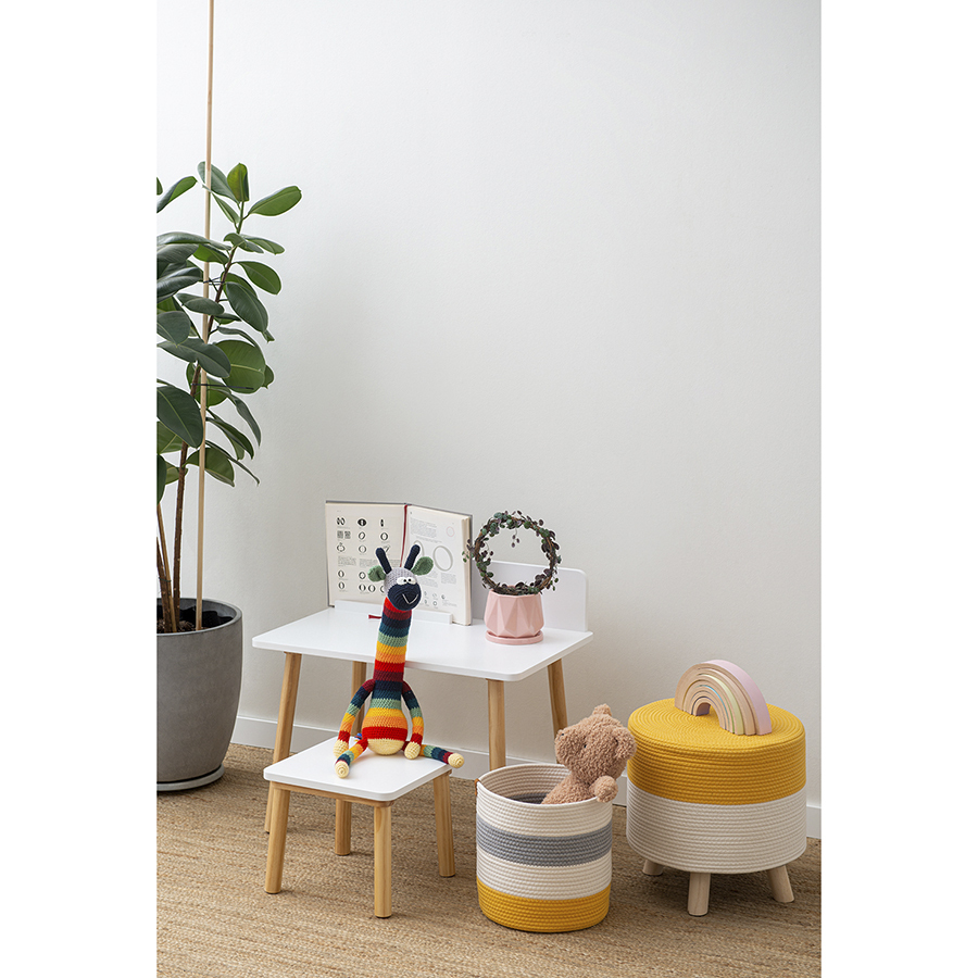 Пуф Devy станет заметным акцентом интерьера благодаря интересному сочетанию фактур и оригинальному цветовому решению. Мебель имеет ножки из неокрашенной сосновой древесины и удобное сиденье из хлопковой ткани, что выигрышно подчеркивает элегантный дизайн в эко-стиле. Такое сочетание материалов гарантирует безопасную эксплуатацию, тактильный комфорт и долгий срок службы. Пуф может использоваться в качестве дополнительного места для сидения или как подставка для ног.