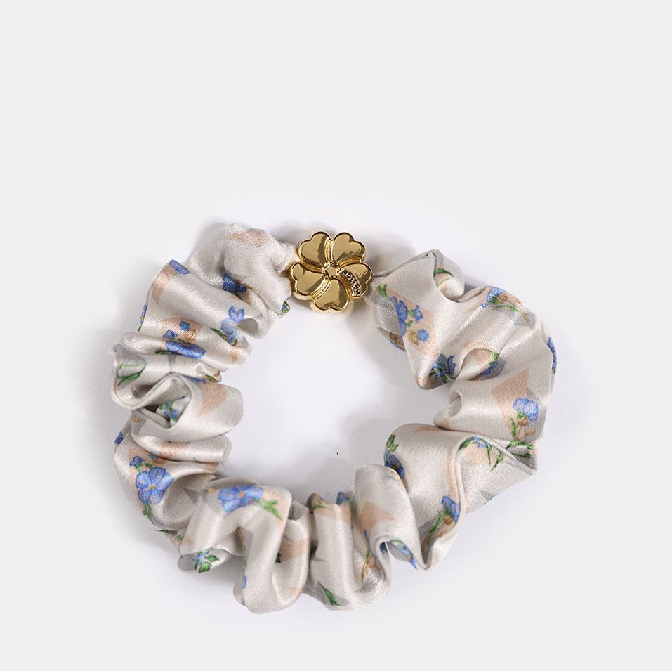 Эстетика и забота о ваших волосах. Шелк предупреждает появление секущихся кончиков и не ломает волосы внутри хвоста, усиливает блеск и гладкость волос. Резинка в фирменных принтах выглядит особенно эффектно за счет блестящего плотного материала. Стильный аксессуар дополнен фирменным металлическим цветком.