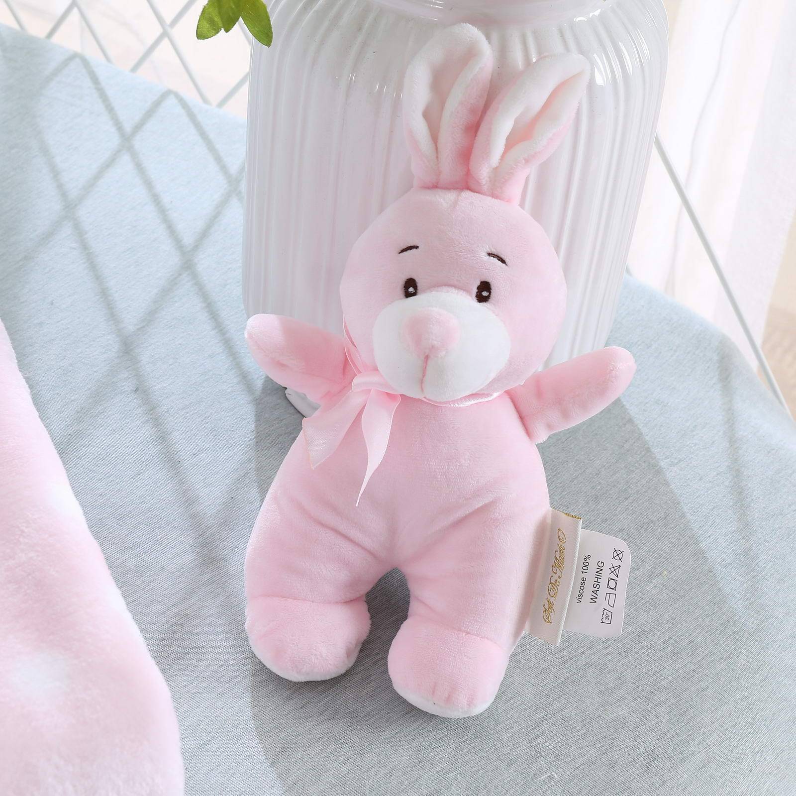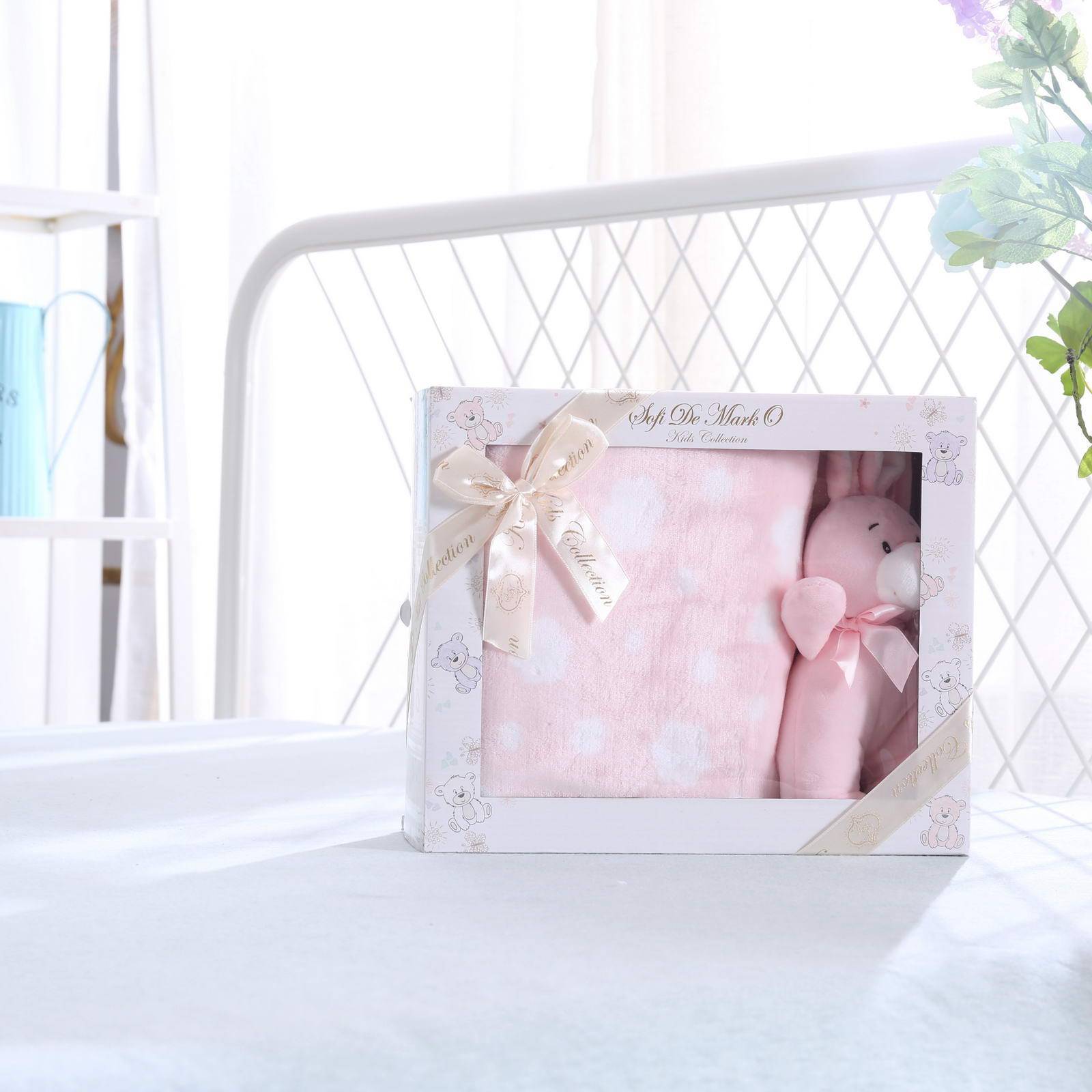 Плед детский с игрушкой.. Размер: 100х150; мишка h-18см Состав: 100% полиэстер; Упаковка: подарочная коробка с лентой.