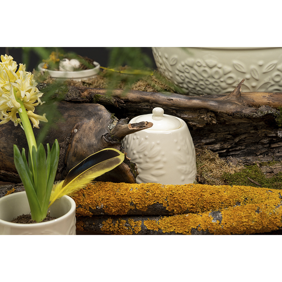 Сахарница из коллекции Birds of Paradise – качественная посуда из экологичной каменной керамики, которая дольше сохраняет продукты свежими и делает интерьер любой кухни более уютным. Отличительной особенностью серии является объемный узор природной тематики, добавляющий дизайну элегантные нотки. Благодаря высокой прочности и устойчивости материала к износу изделие не теряет привлекательный внешний вид на протяжении всего срока службы. Покрытие глазурью облегчает уход, обеспечивает декоративность и дополнительную защиту от внешних воздействий.