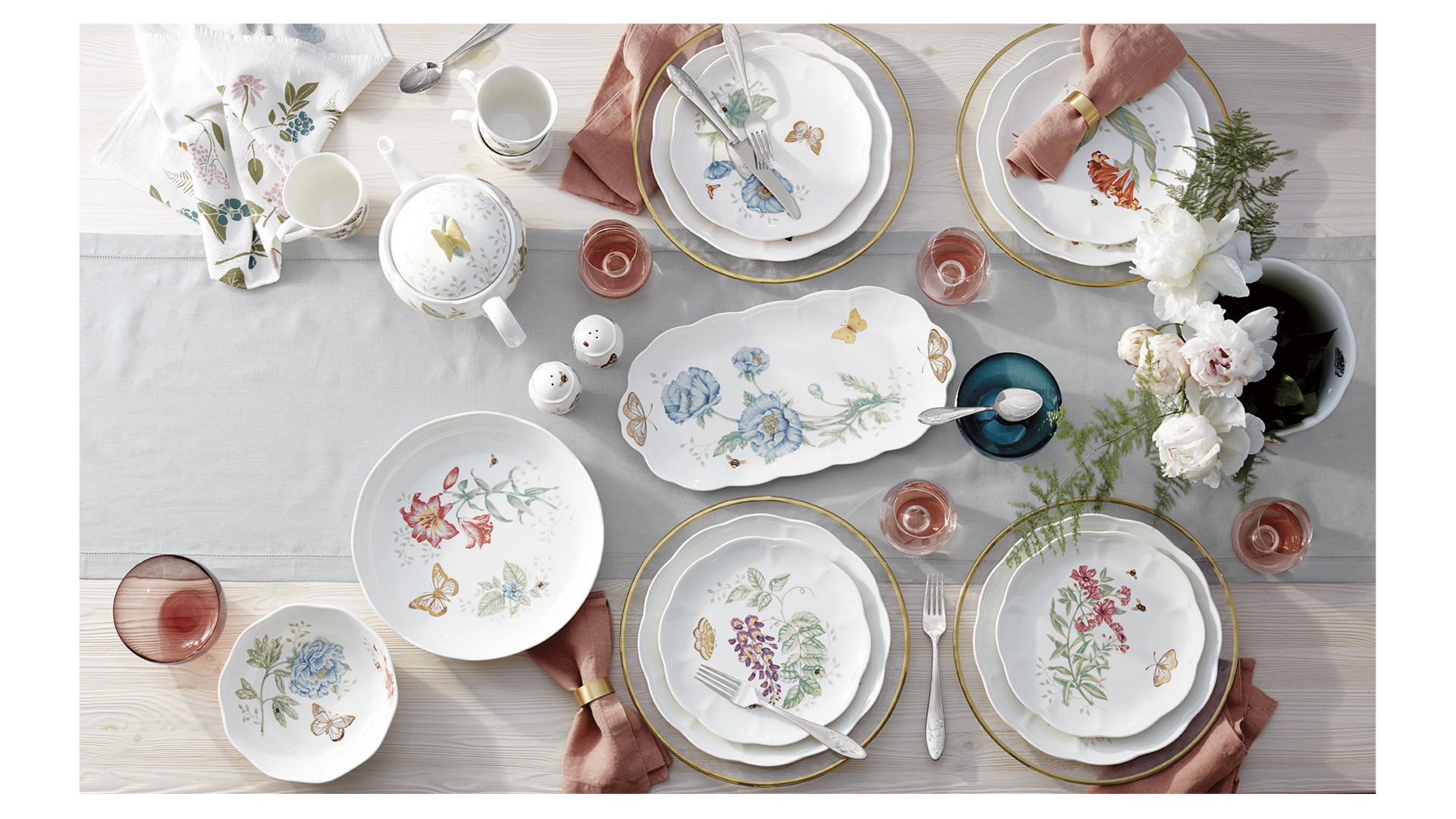 Предметы юбилейной коллекции могут использоваться для сервировки в модном стиле mix&match, идеально сочетаются с базовой коллекцией «Бабочки на лугу», а акцент в виде золотой бабочки или стрекозы лишь подчёркивает эксклюзивность коллекции, придаёт праздничный оттенок сервировке. Этот фирменный дизайн Lenox отличается элегантным волнистым краем на прочном белом фарфоре. Каждый предмет имеет специальную отметку, указывающую на то, что он из юбилейной серии 2020 года, которая будет доступна только ограниченный период времени.
