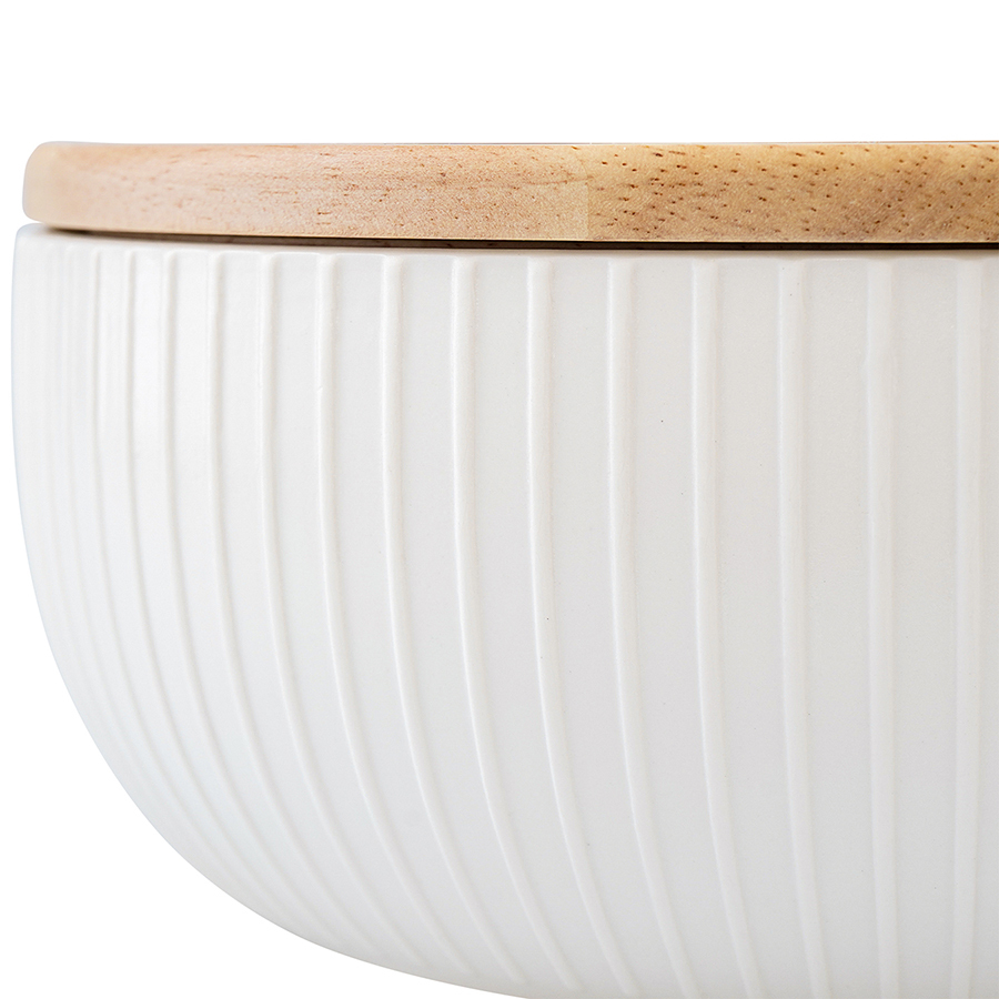 Салатник из коллекции Soft Ripples Dual Glazing великолепно впишется как в повседневную, так и праздничную сервировку стола. Посуда из благородного фарфора с двойной глазуровкой имеет презентабельный вид и отличные эксплуатационные характеристики. Материал неприхотлив в уходе, не впитывает загрязнения, является экологичным и безопасным для здоровья. Рельефный узор на внешней поверхности стенок делает дизайн оригинальным. Емкость дополнена крышкой из бамбука, которая может использоваться в качестве сервировочной доски, а также позволяет защитить блюда от заветривания и удобно хранить продукты в холодильнике.