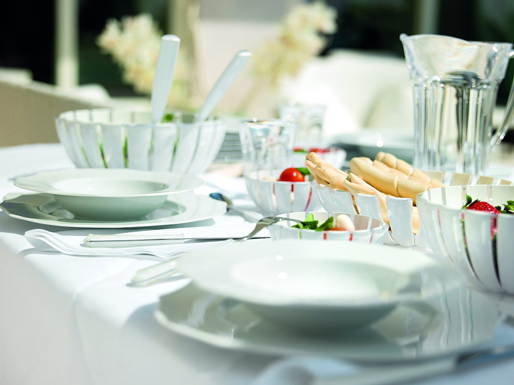 Салатница Grace выглядит настолько изящно, что кажется, будто она сделана из стекла. Её главный секрет - необычная форма, в которой внешние, объемные и волнообразные края контрастируют с белоснежной и гладкой внутренней поверхностью. Вместе они образуют уникальный рельефный эффект, который усиливается на свету.
