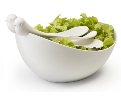 Необыкновенно красивая салатная миска с сервировочными ложками приближает нас к природе, в ней так и хочется приготовить аппетитный, полезный, свежий салат!