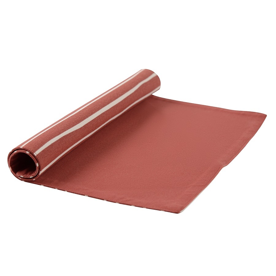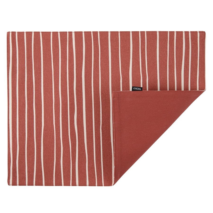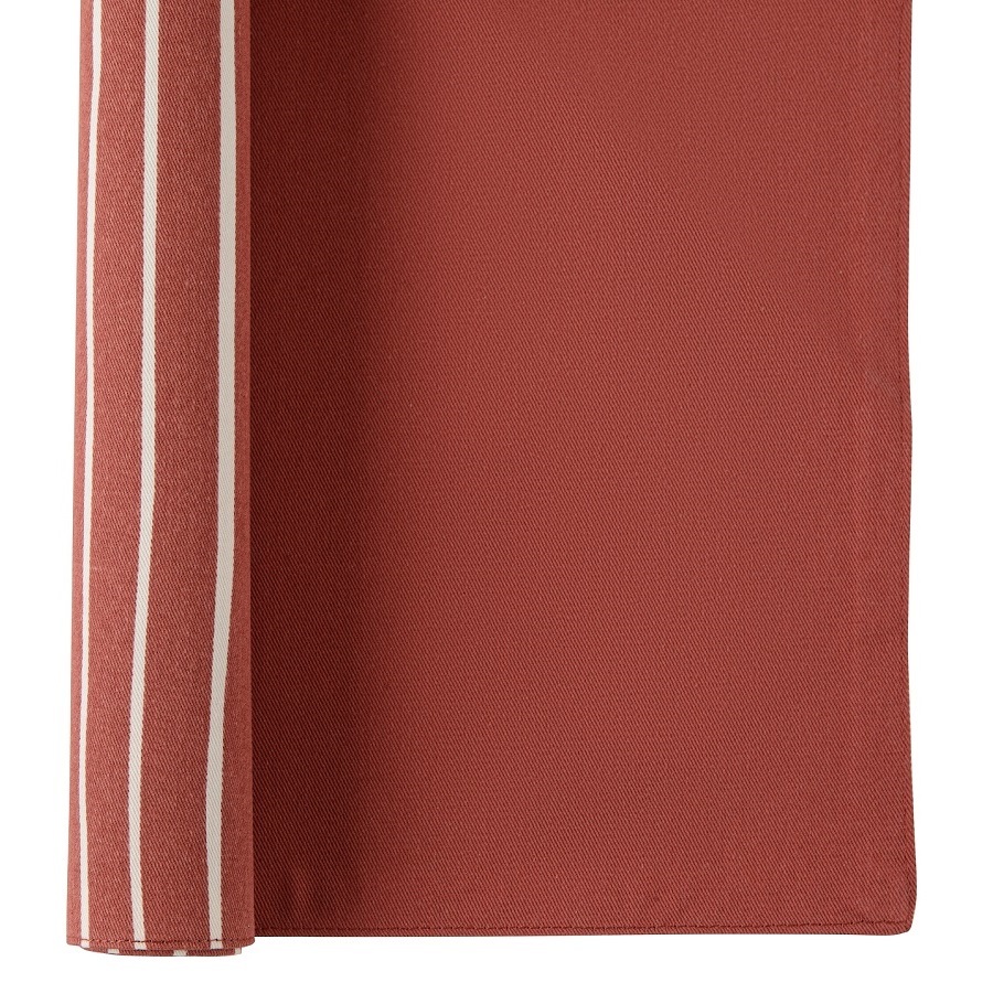 Двухсторонняя салфетка под приборы терракотового цвета с принтом Полоски из коллекции Prairie станет украшением праздничного и повседневного стола. Одна сторона украшена светлой полоской, а другая однотонная — террактового оттенка. Такой цвет легко сочетать с другим кухонным текстилем. Материал – экологически чистый хлопок. Тип плетения: твил