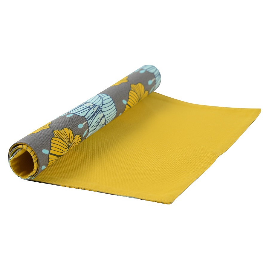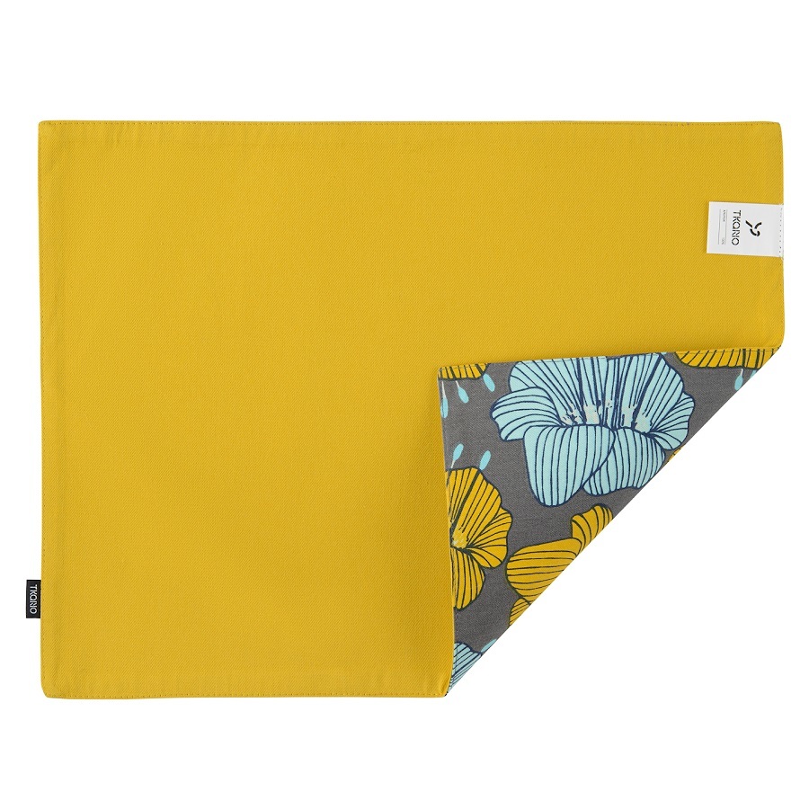 Двухсторонняя салфетка под приборы серого цвета с принтом Цветы из коллекции Prairie станет украшением праздничного и повседневного стола. Одна сторона украшена крупными цветами, а другая однотонная —горчичного оттенка. Материал – экологически чистый хлопок. Тип плетения: твил