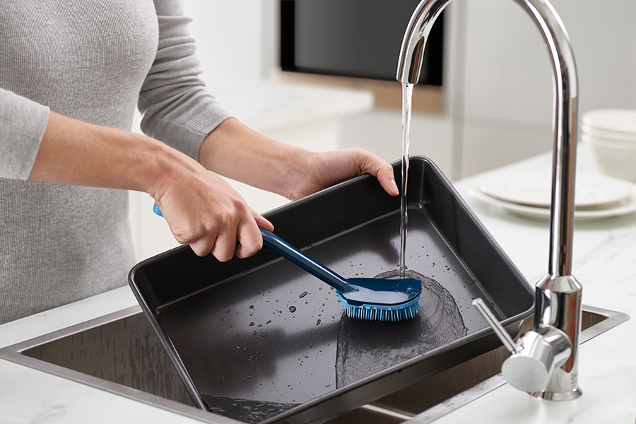 Щетка для мытья посуды CleanTech займет достойное место на любой кухне. Аксессуар оснащен жесткой полимерной щетиной, которая не дает скапливаться грязи, не впитывает воду и быстро сохнет. Щетка с эргономичной ручкой эффективно очищает любые загрязнения даже с антипригарной посуды. В набор входит запасная насадка.