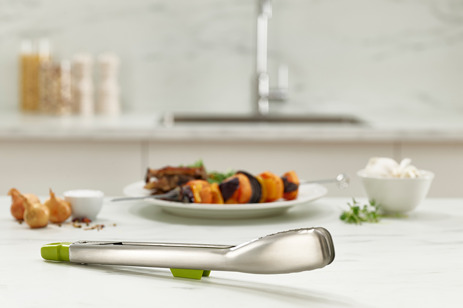 Кухонные щипцы из нержавеющей стали входят в серию кухонных приборов Elevate™, разработанную для поддержания максимального порядка во время приготовления пищи. Специальный утяжелитель в рукоятке постоянно удерживает наконечники на весу, благодаря чему они не касаются рабочей поверхности. Запираемый механизм на рукоятке фиксирует щипцы в закрытом положении. Стальные наконечники обеспечивают точное сцепление, что позволяет щипцам справиться с переворачиванием продуктов во время жарки, а также сервировкой готовых блюд. Можно мыть в посудомоечной машине.