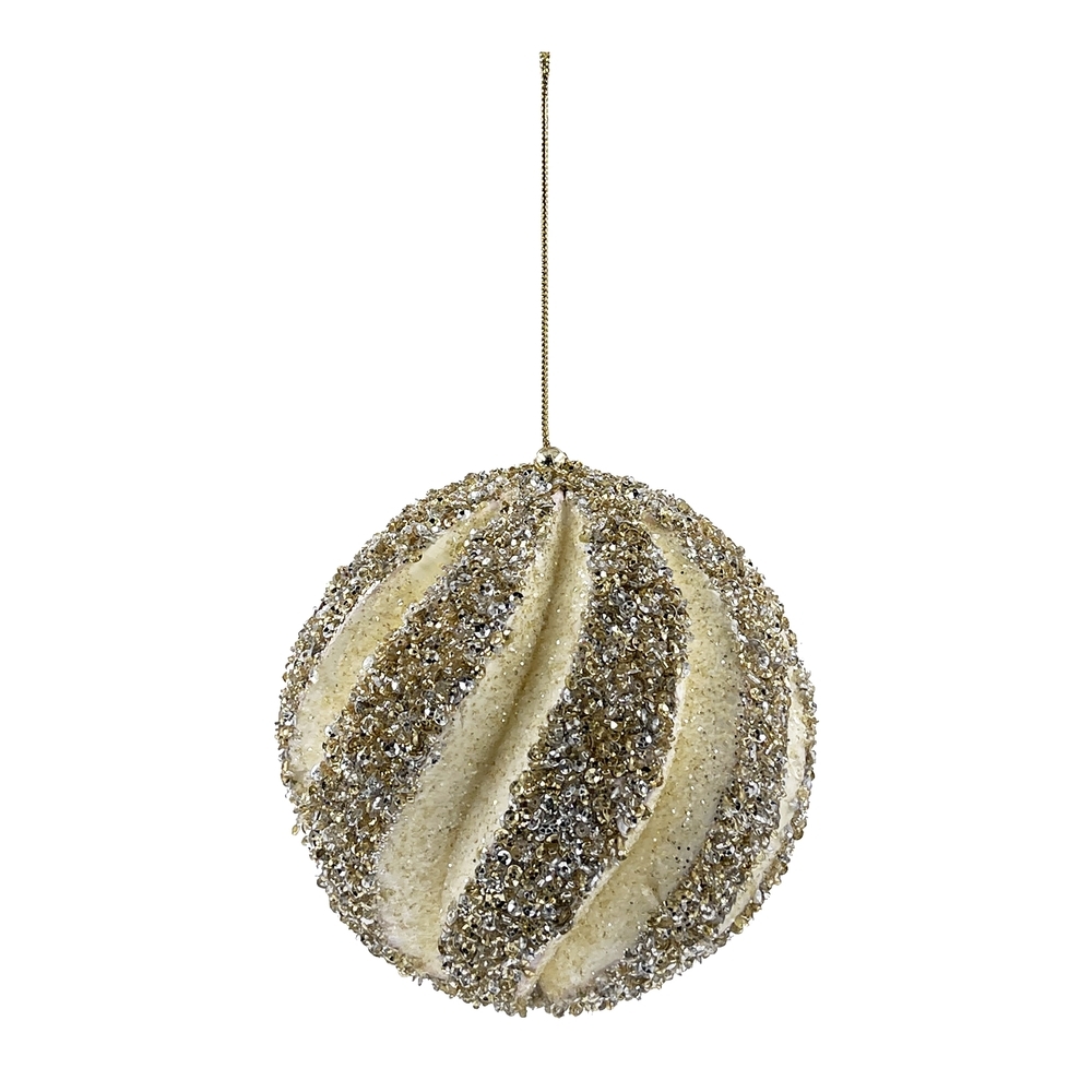 Шар резной с бисером 13см ChristmasDeLuxe premium collection бежево-золотой