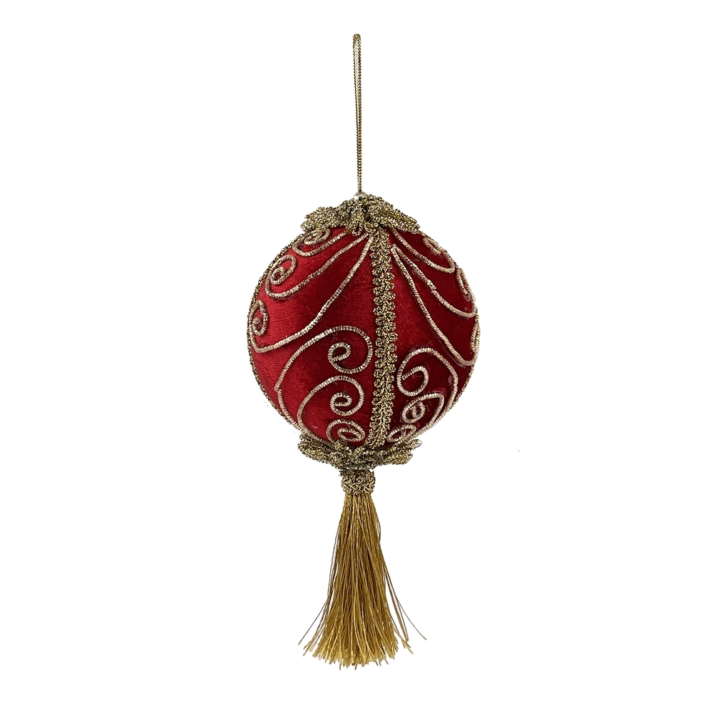 Шар с кисточкой 10см ChristmasDeLuxe premium collection красный/золотой