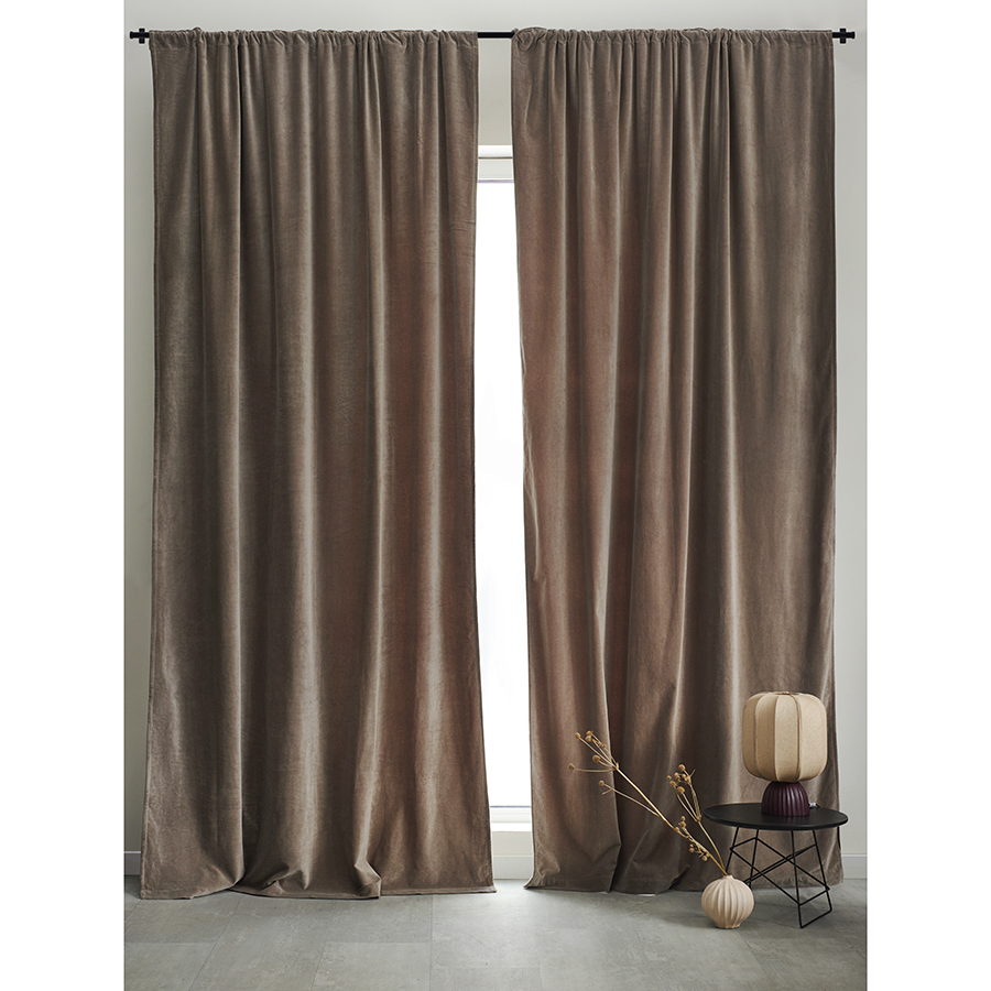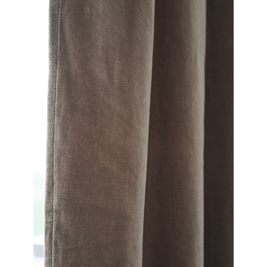 Штора из хлопкового бархата серого цвета из коллекции Essential – простой способ привнести в интерьер нотки роскоши и элегантности. Материал эффектно переливается на солнце и красиво драпируется, позволяя создавать интересные визуальные акценты. Текстиль отлично сочетается как с классическим, так и современным дизайном, в том числе с грубой отделкой в виде кирпичной кладки и штукатурки.