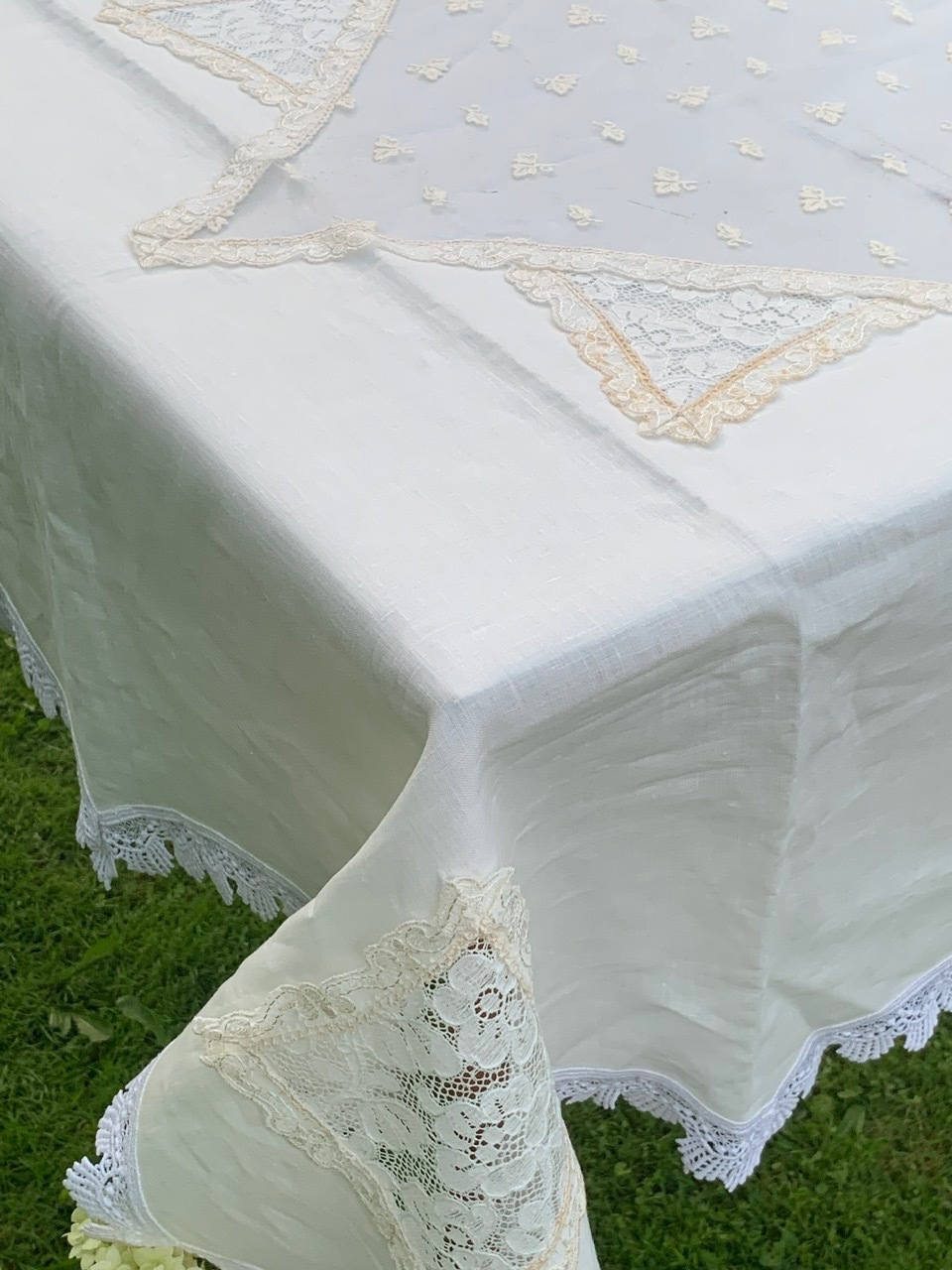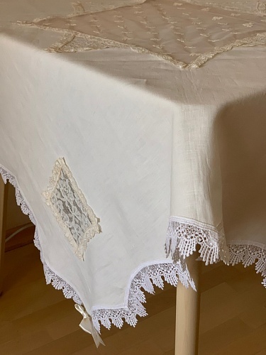 Авторская скатерть из мягкого льна с флорентийским кружевом.