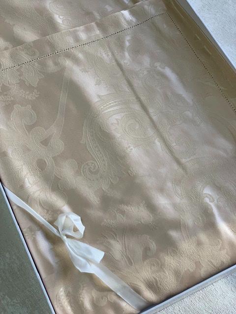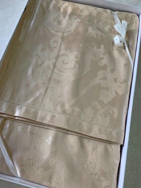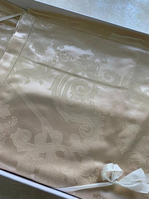 Все скатерти этой фабрики отличаются особенной изысканностью. Изготавливаются из высококачественных тканей, проходят специальную обработку благодаря которой ткань приобретает легкость, после стирки не садится, легко гладится. Кружево пр-ва Швейцарии.