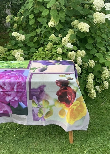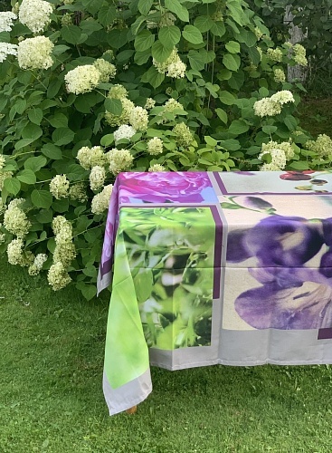 Прекрасная итальянская скатерть с принтами разновидностей тюльпанов. Подходит для квадратного, для круглого и также для прямоугольного стола.
