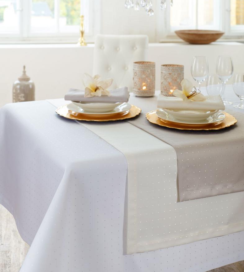 Оригинальная скатерть из коллекции Petito имеет удивительный блеск ткани и геометрический рисунок в тон скатерти. Идеально подходит к любому интерьеру.