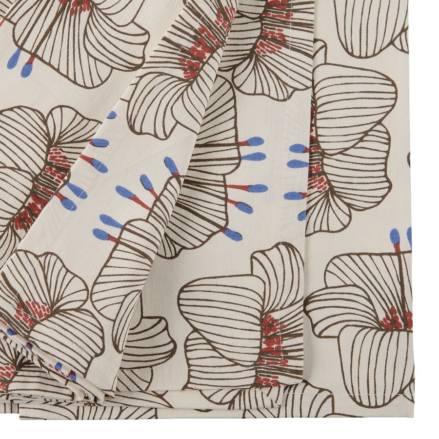 Скатерть из хлопка молочного цвета с принтом Цветы из коллекции Prairie станет центральным элементом сервировки стола. Модель выполнена из прочного, экологически чистого хлопка. Дизайн с крупными цветами ярким акцентом гармонично впишется в любой современный стиль. Износостойкий материал хорошо впитывает влагу и не деформируется даже после множества стирок. Тип плетения: твил.