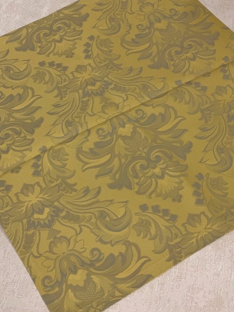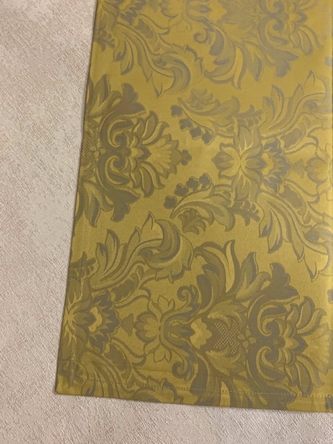 Красивая жаккардовая скатерть с роскошным узором золотого цвета и 12 салфеток в комплекте.