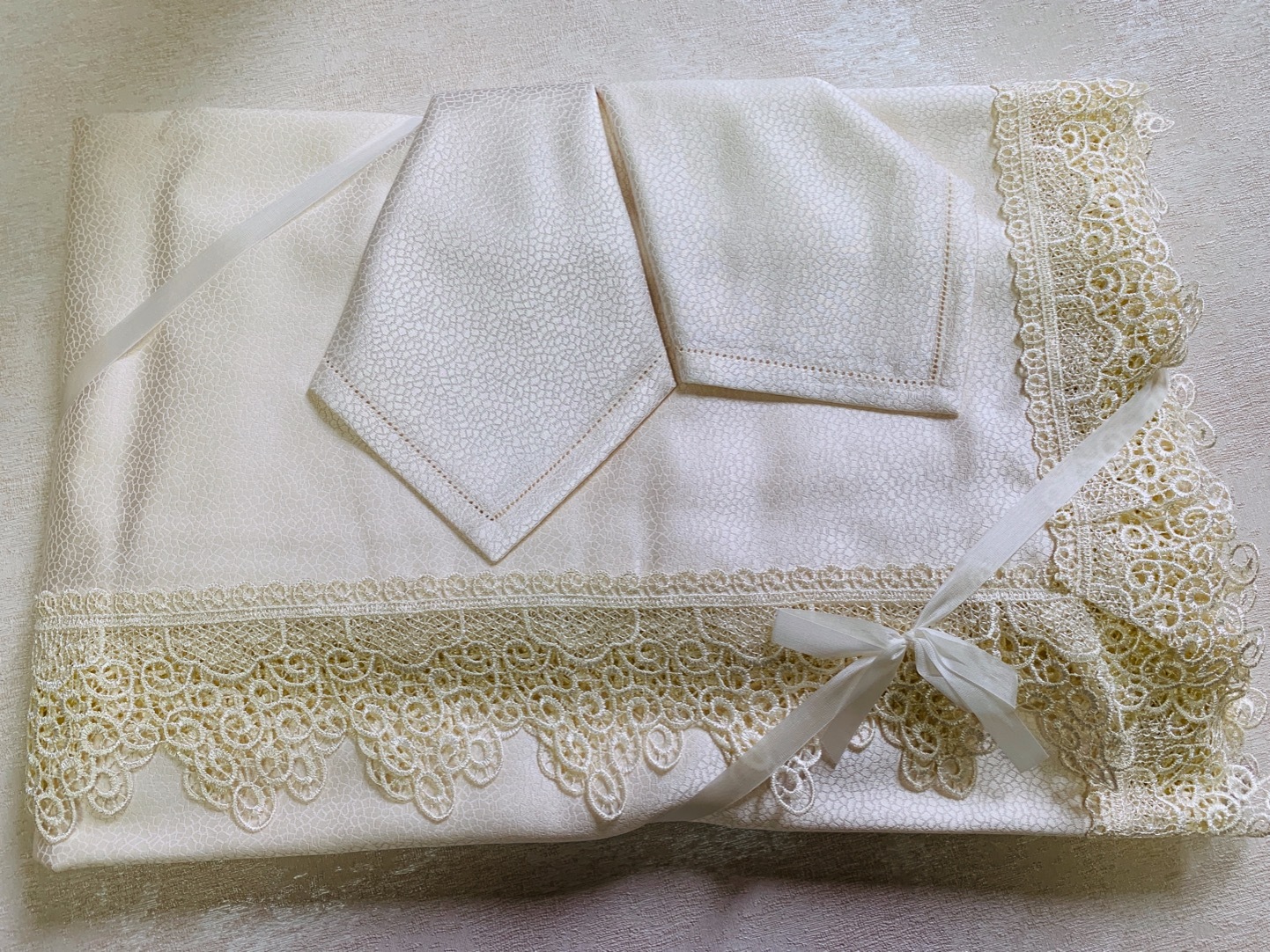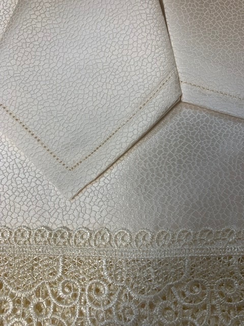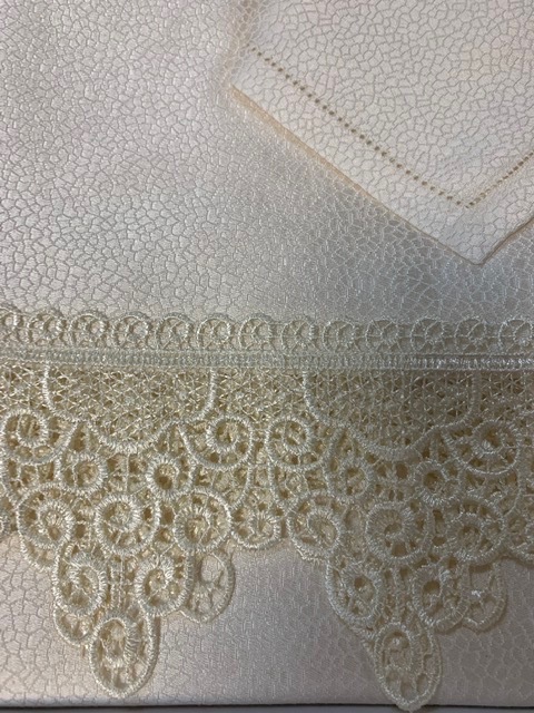 Приятный сюрприз для любителей устраивать званые обеды и романтические ужины - прекрасное столовое бельё в классическом стиле. Это салфетки и скатерти с кружевом сливочного цвета торговой марки GAMBA. Цветы и свечи не обязательны, но желательны, хорошее настроение обеспечено.