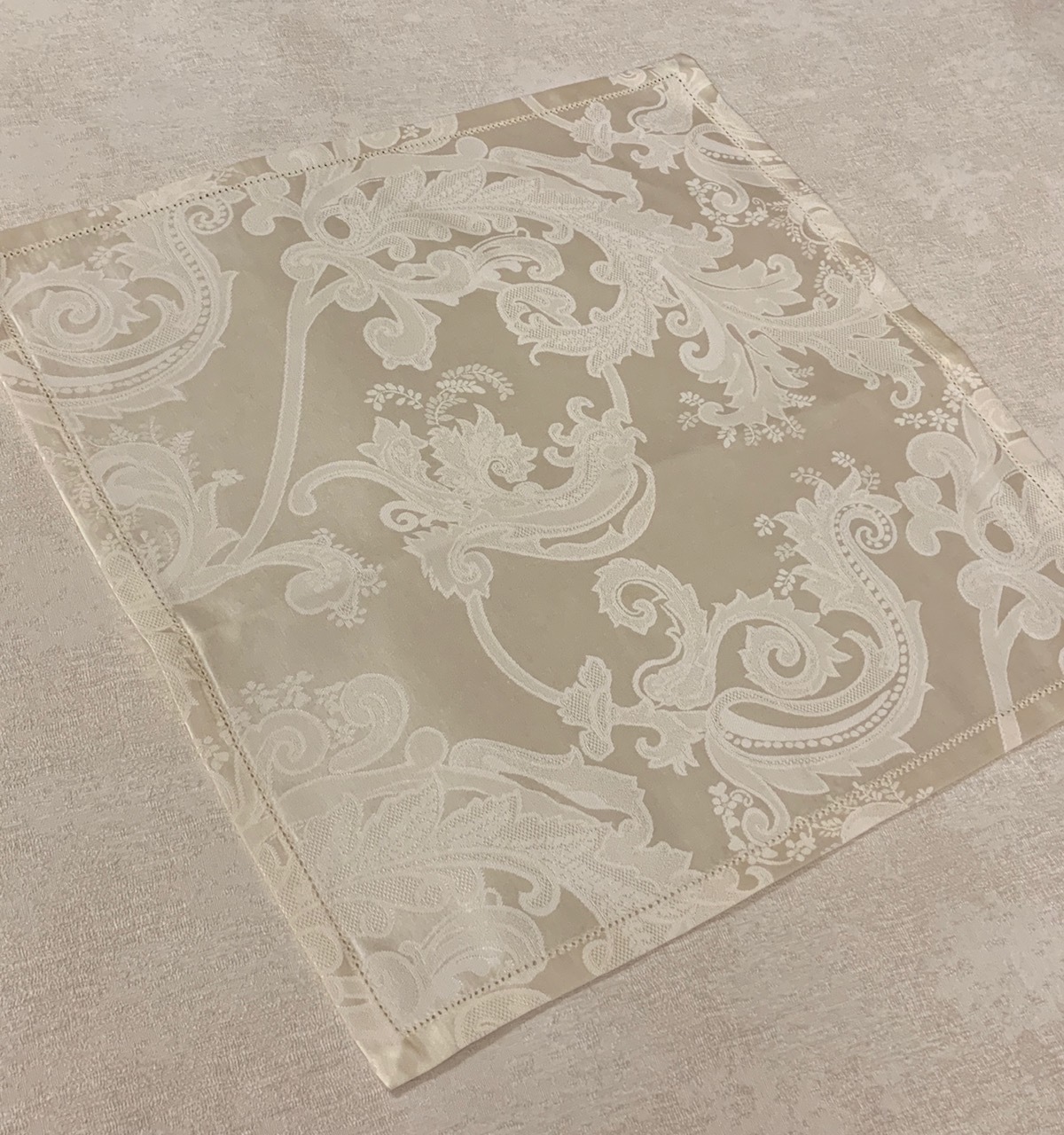 Приятный сюрприз для любителей устраивать званые обеды и романтические ужины - прекрасное столовое бельё в классическом стиле. Это салфетки и скатерти с кружевом сливочного цвета торговой марки GAMBA. Цветы и свечи не обязательны, но желательны, хорошее настроение обеспечено.