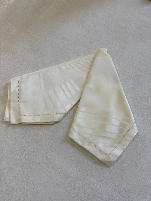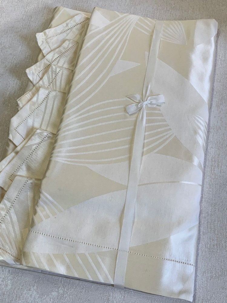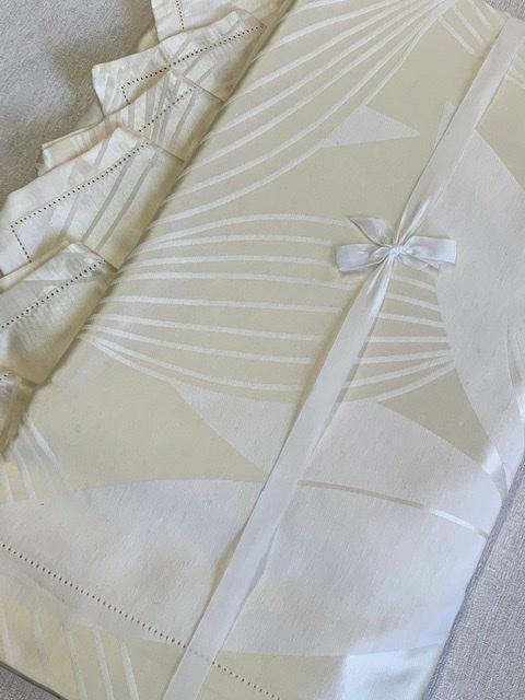 Красивая итальянская скатерть очень приятного сливочного цвета с 12 салфетками.