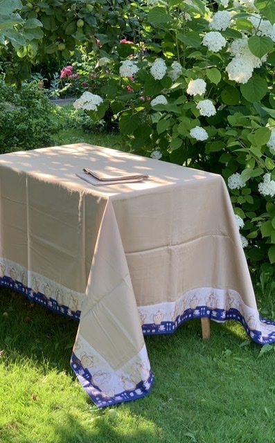 Скатерть 175x270 и 12 салфеток TagHouse 307 Teiere Чайники бежево-синие