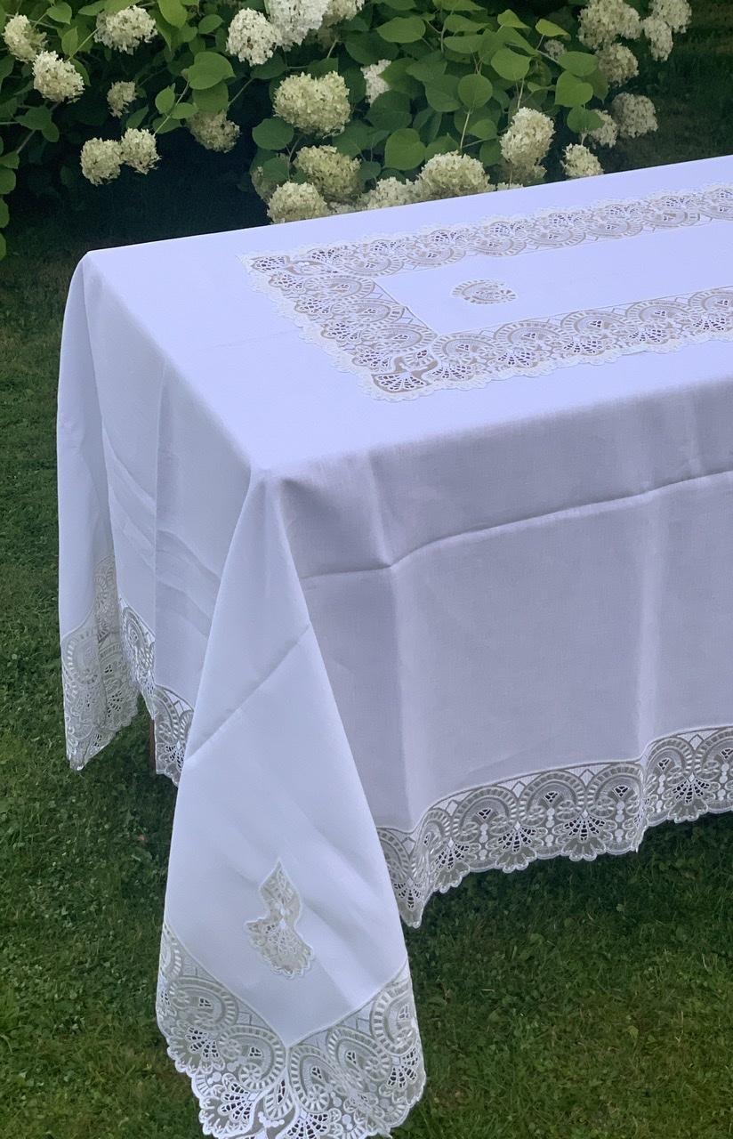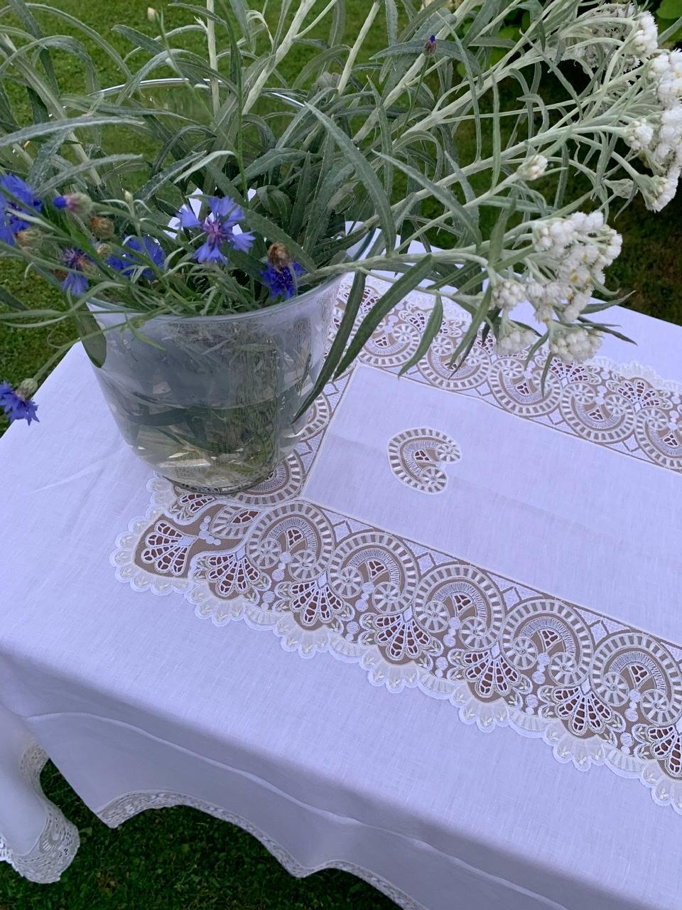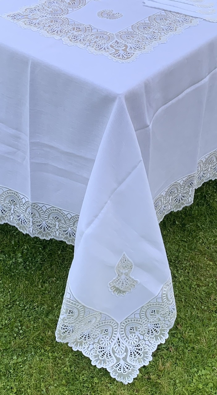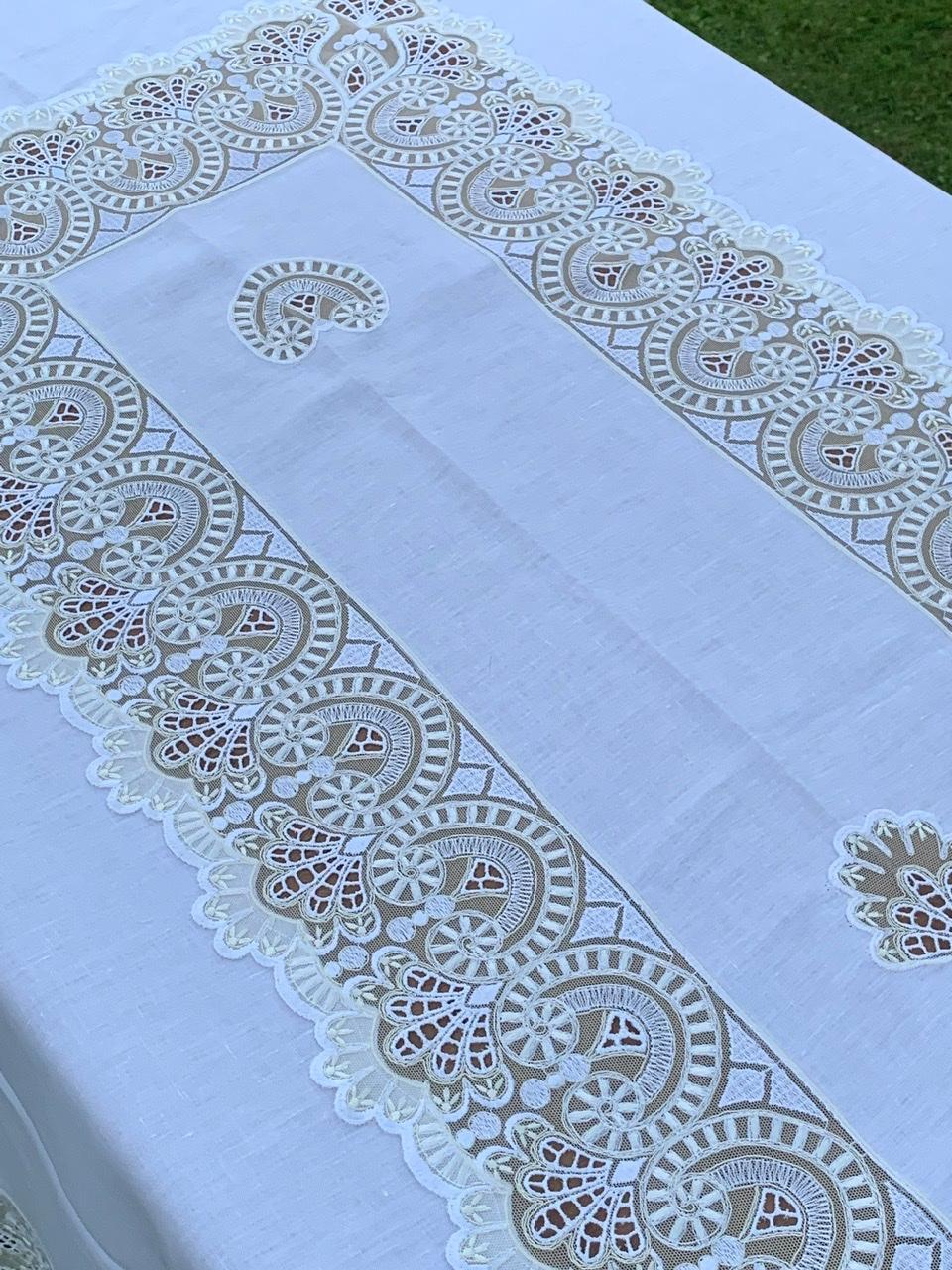 Элитная итальянская скатерть из высококачественного 100% льна. Авторская работа.