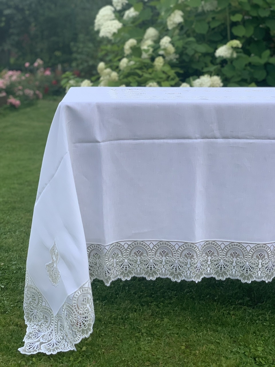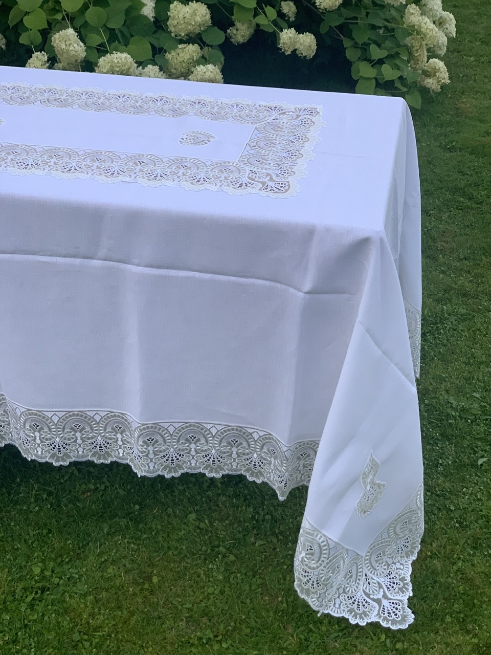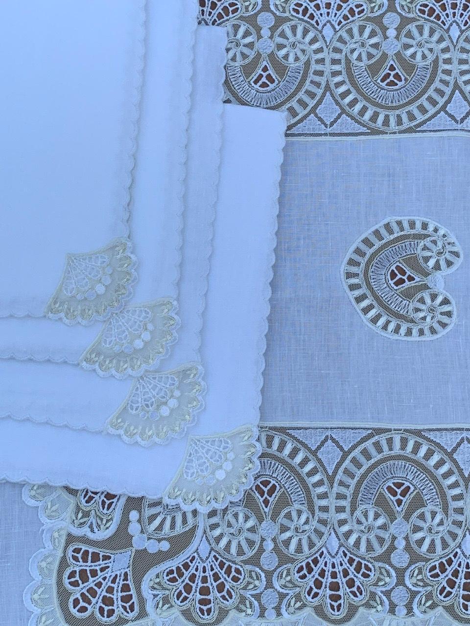 Элитная итальянская скатерть из высококачественного 100% льна. Авторская работа.