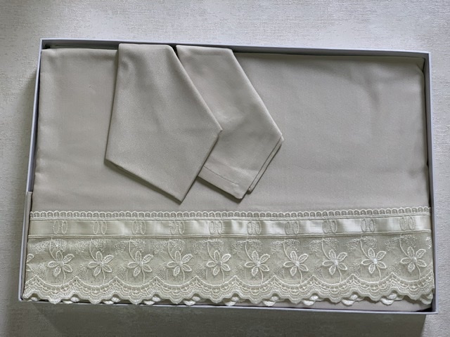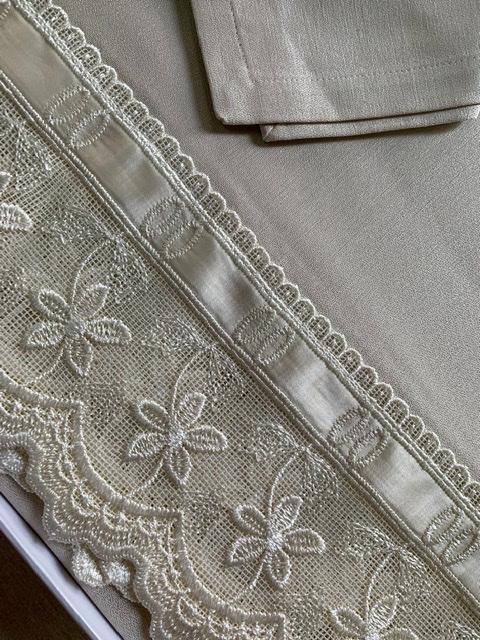 Все скатерти этой фабрики отличаются особенной изысканностью. Изготавливаются из высококачественных тканей, проходят специальную обработку благодаря которой ткань приобретает легкость, после стирки не садится, легко гладится. Кружево пр-ва Швейцарии.