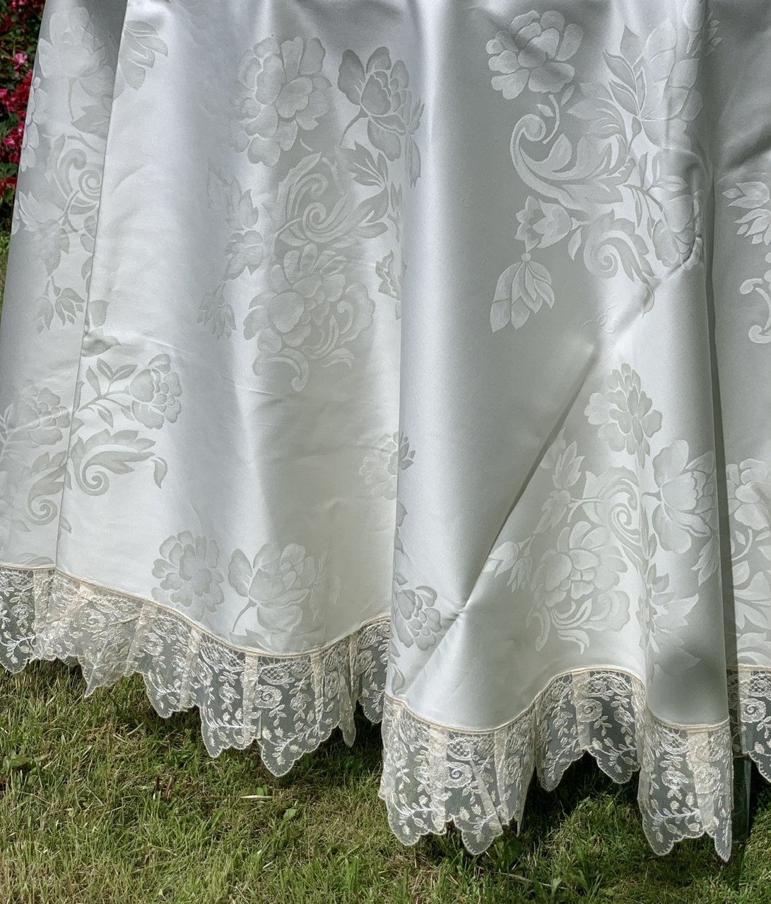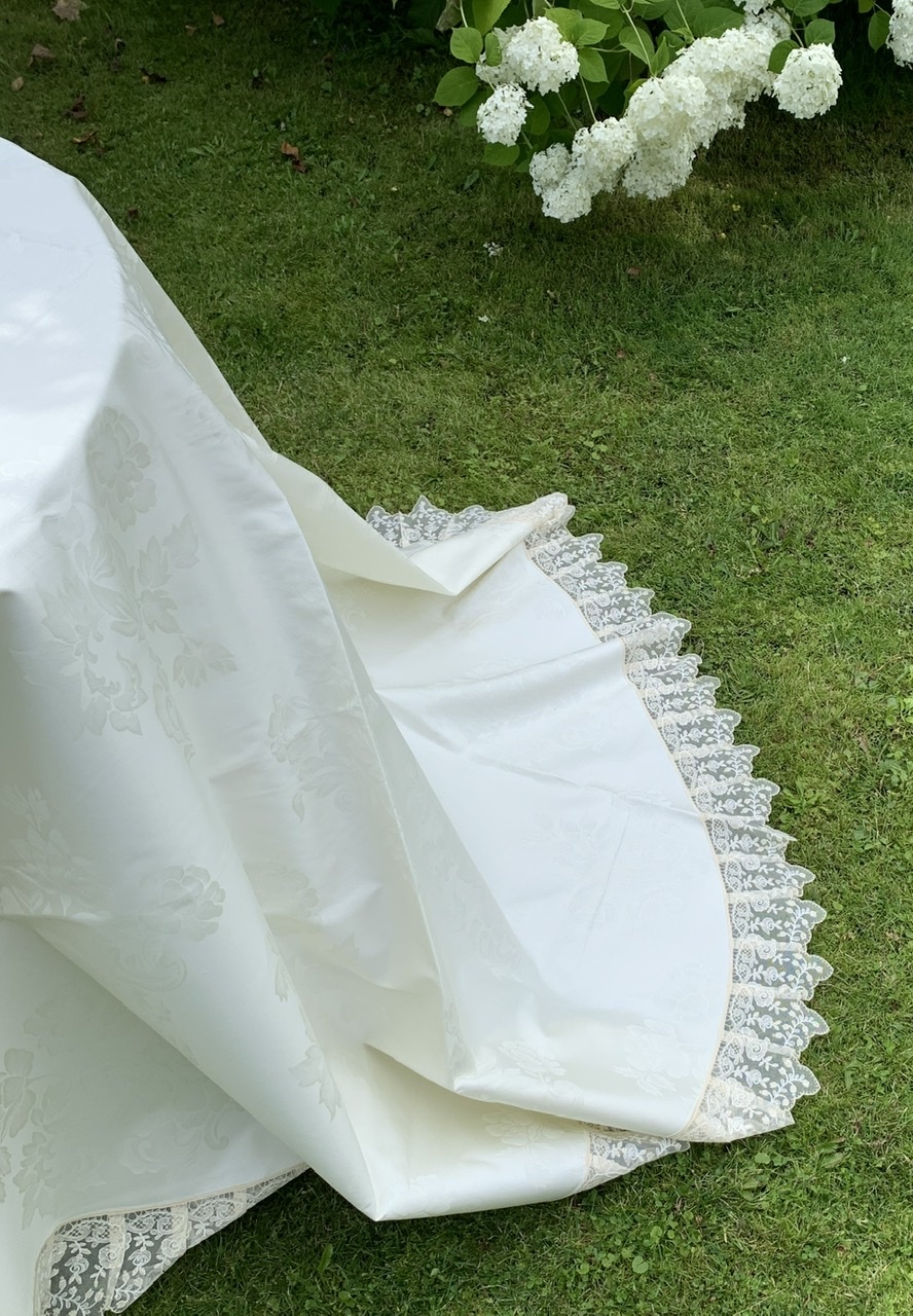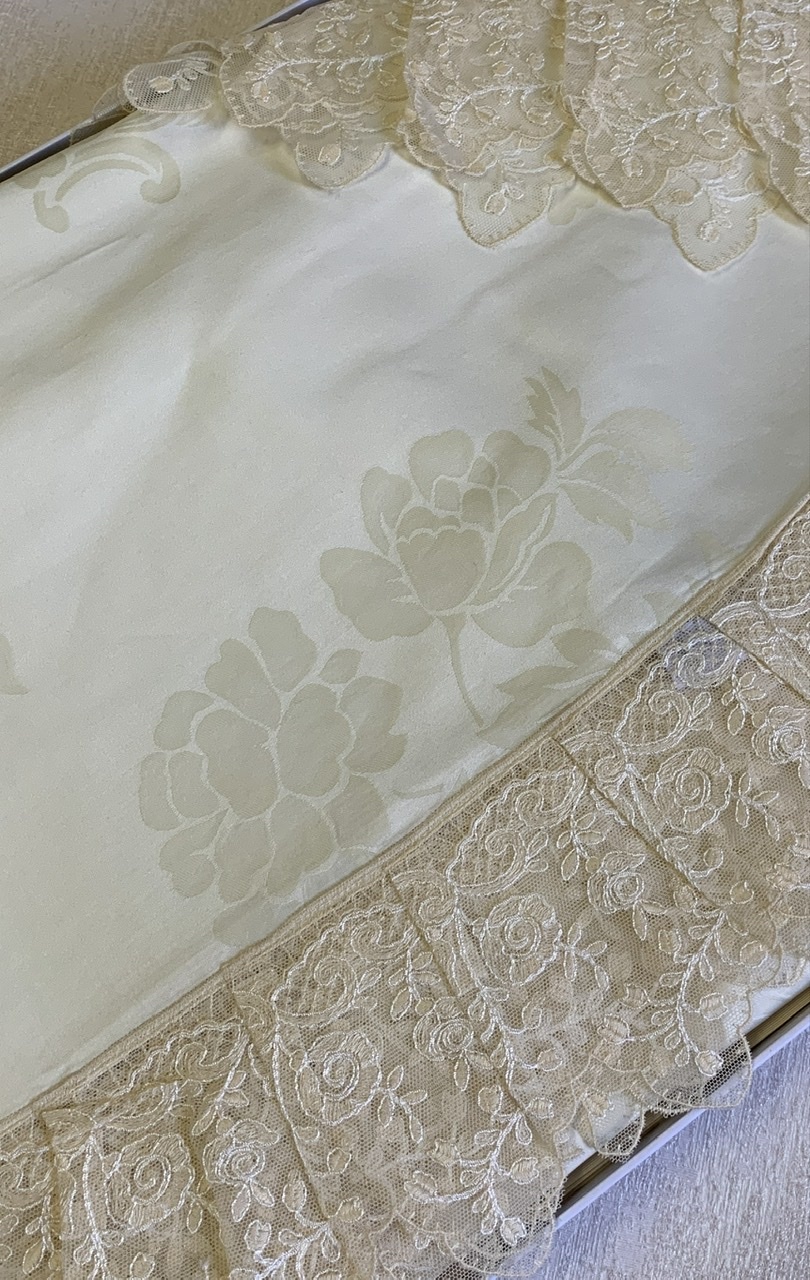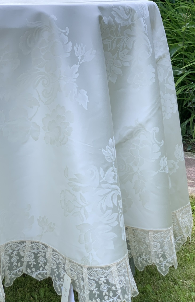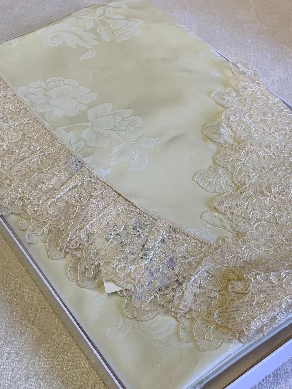 Тандем кружева и сатина - идеальное сочетание! Столовое белье от Palombella - это плавность линий, элегантность и комфорт в использовании. Эта скатерть вне времени и сиюминутных влияний моды.